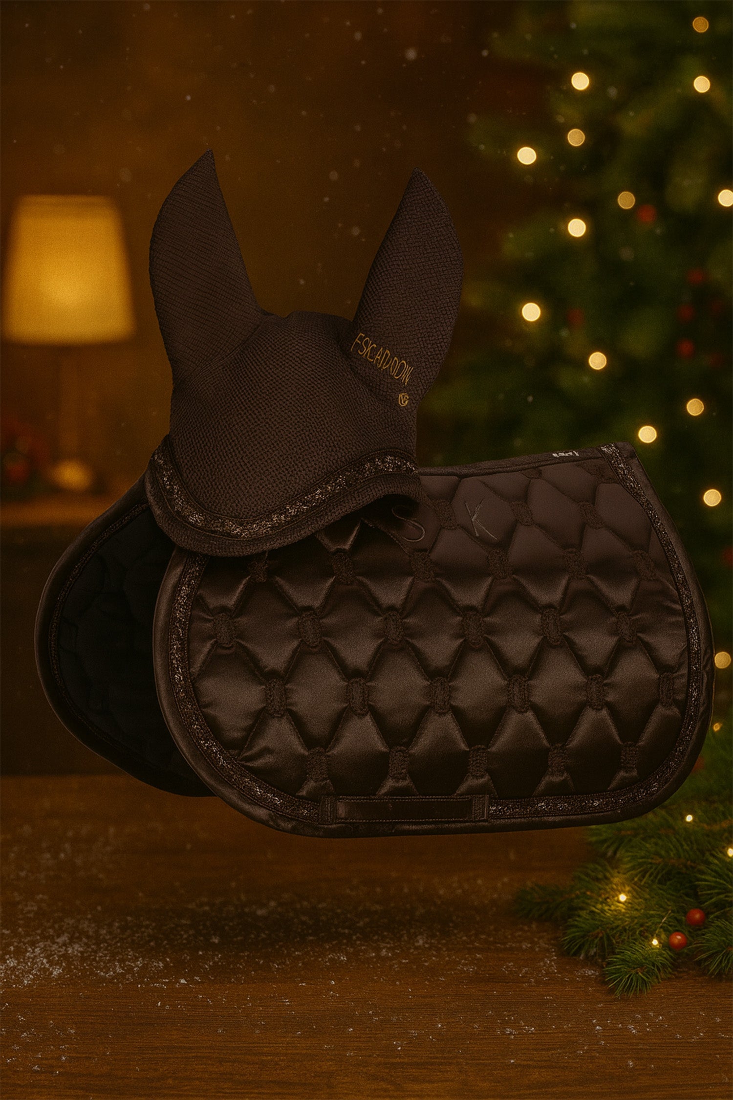 Det här matchande setet från Eskadron kombinerar en elegant satinlook med genomtänkt funktion – perfekt för dig som vill att både häst och utrustning ska kännas extra lyxiga i både vardag och på tävling. Den djupa mörka tonen, glansen i schabraket och de diskreta glitterdetaljerna ger en exklusiv helhet som ändå är stilren och lätt att matcha.