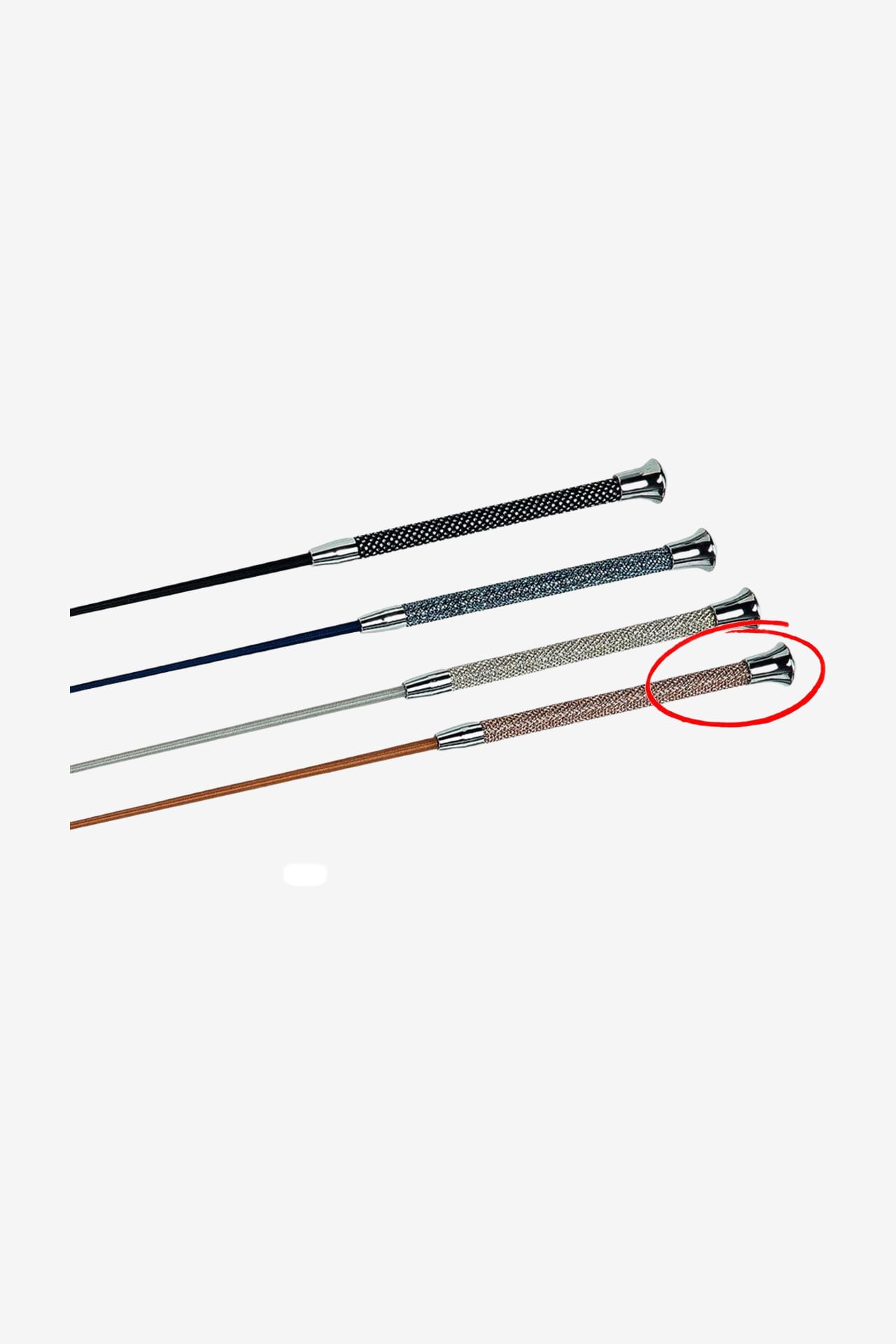 Exklusivt dressyrspö med överspunnen glasfiberkärna. Gnistrande stenar på handtaget och silverfärgad knopp.