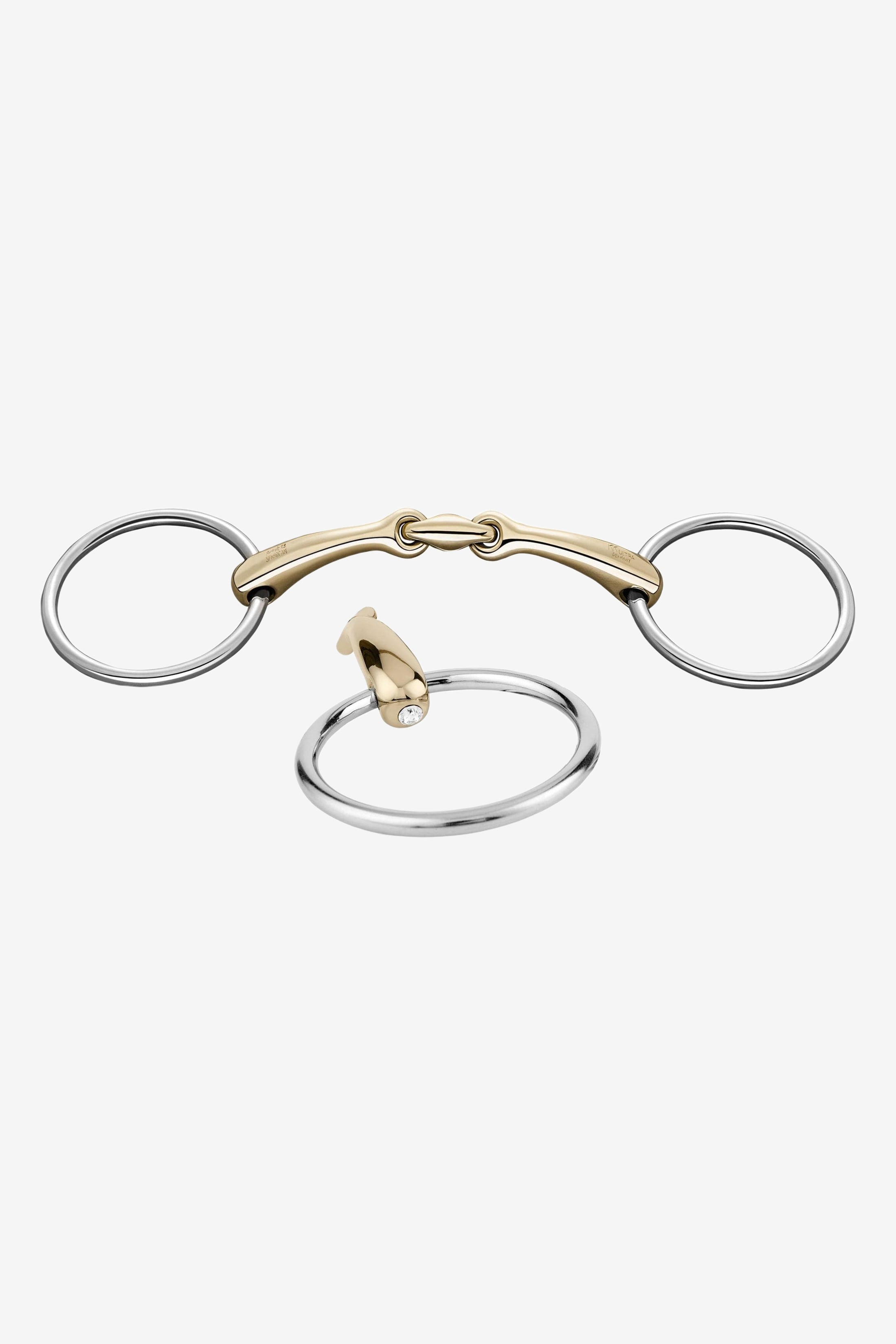 Den här modellen är ett 3-delat bett med lösa ringar samt en Swarovskisten i vit kristall i sidan på mundelen (färg A hos Sprenger). De lösa ringarna ger en snabbare kontakt med hästens mun och på så vis även en snabbare eftergift av tygeln. Lösa ringar lämpar sig oftast bra på hästar som lätt blir lite stumma i munnen med fasta ringar.