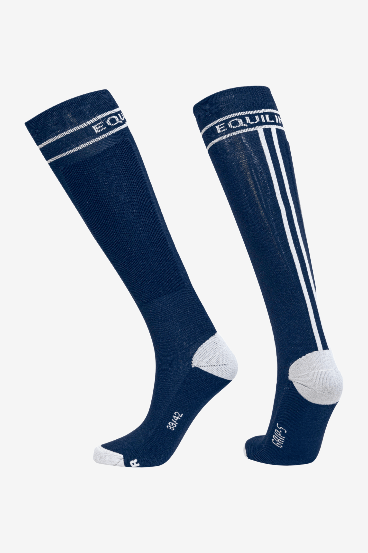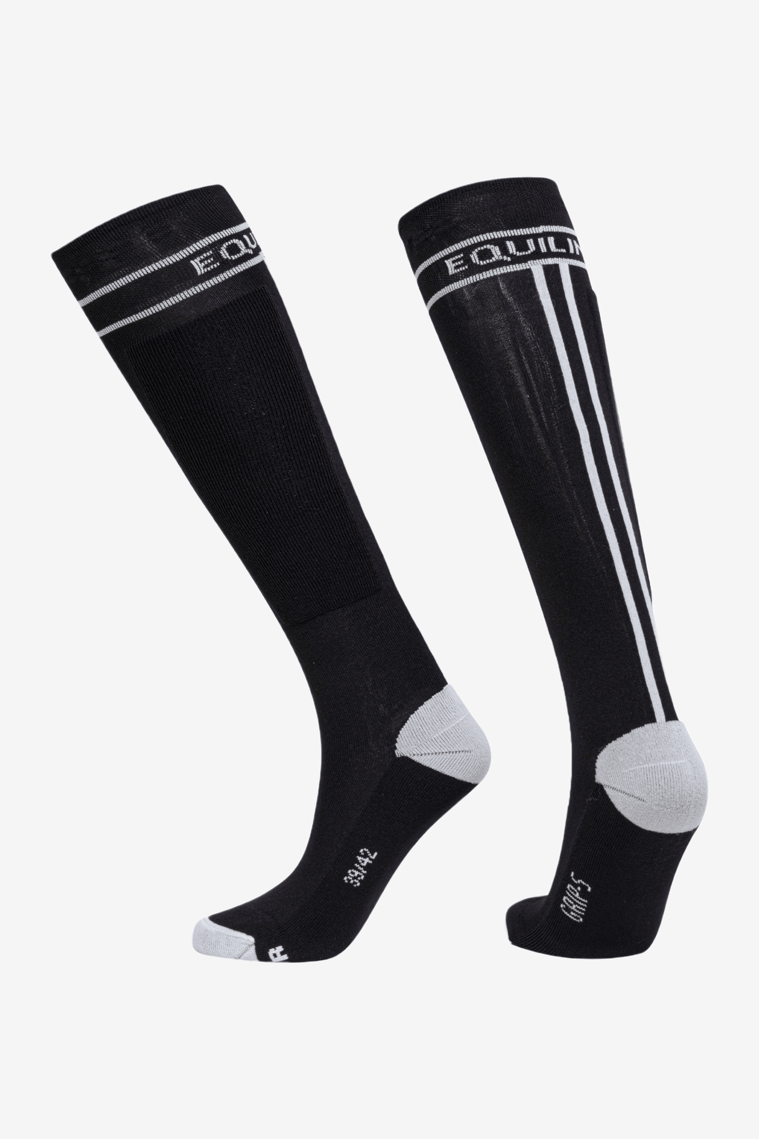 Cirec Ridestrømpe er en knæhøj ridestrømpe fra Equiline med kontrastfarvet hæl og tå. Den har to parallelle striber langs bagsiden af læggen og en logo øverst på skaftet.