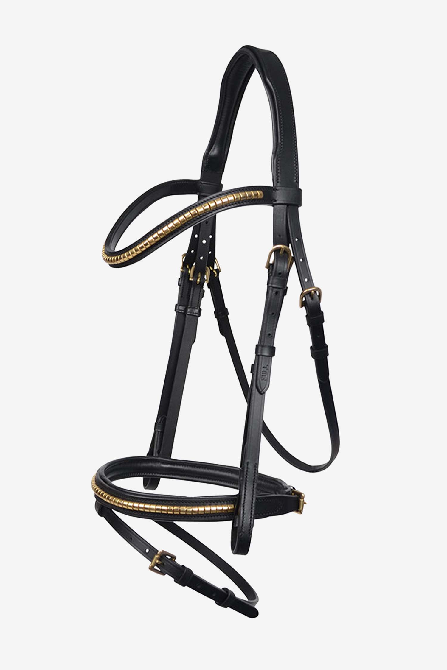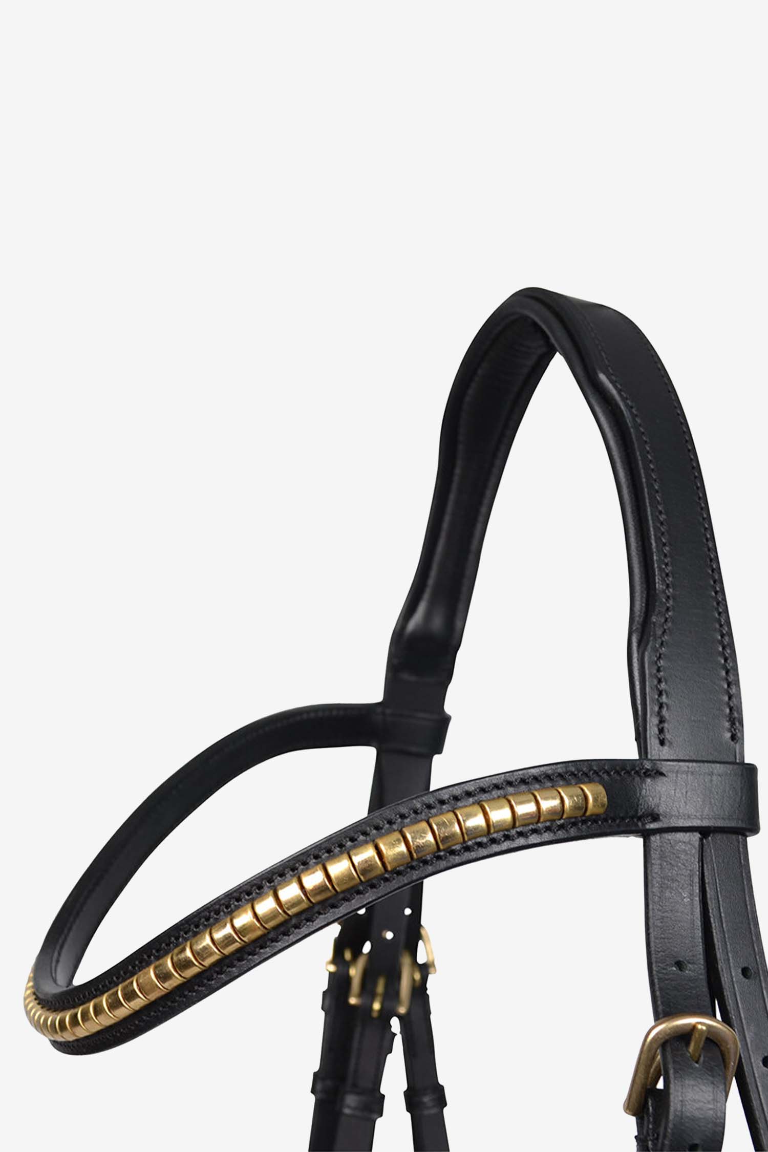 Fremstillet af blødt læder af høj kvalitet. Polstret over nakken og næseremmen. Flot dekoreret med en clincherkæde i messingfarve. Har også spænder i messing.