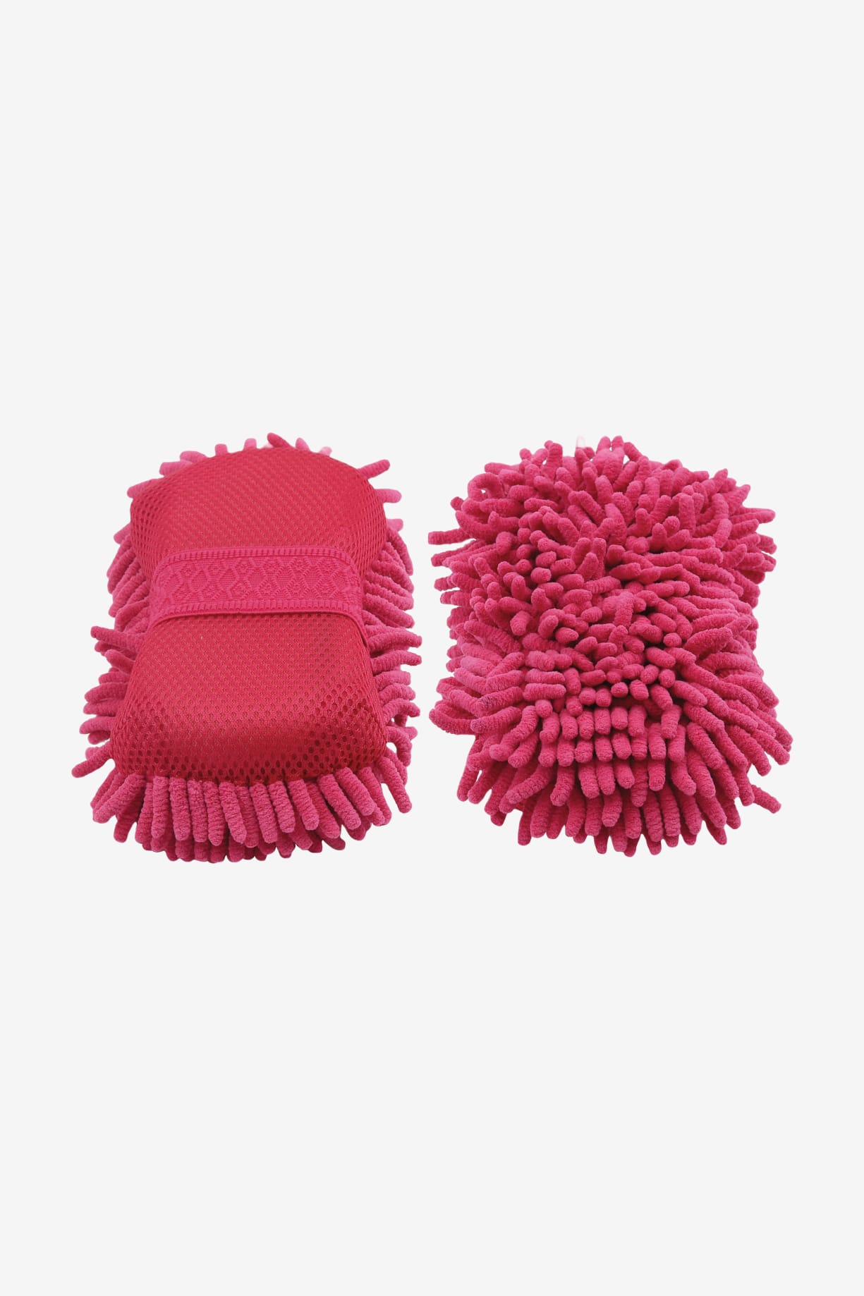 Tosidet handske med gummibørste på den ene side til genstridig snavs og mikrofibermateriale på den anden side, som effektivt fjerner støv og skidt.