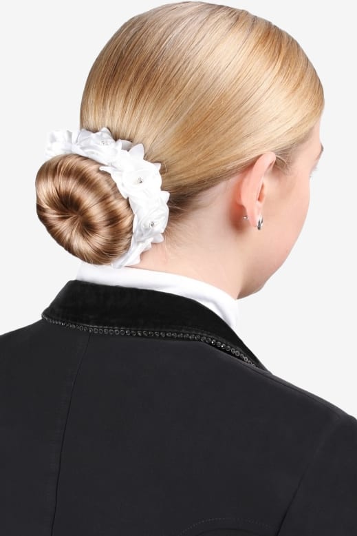 Super schönes Haargummi zum Befestigen am Dressurdutt. Wunderschöne Blumen mit Steinen und elastischem Band, das dafür sorgt, dass das Band fest an seinem Platz bleibt.