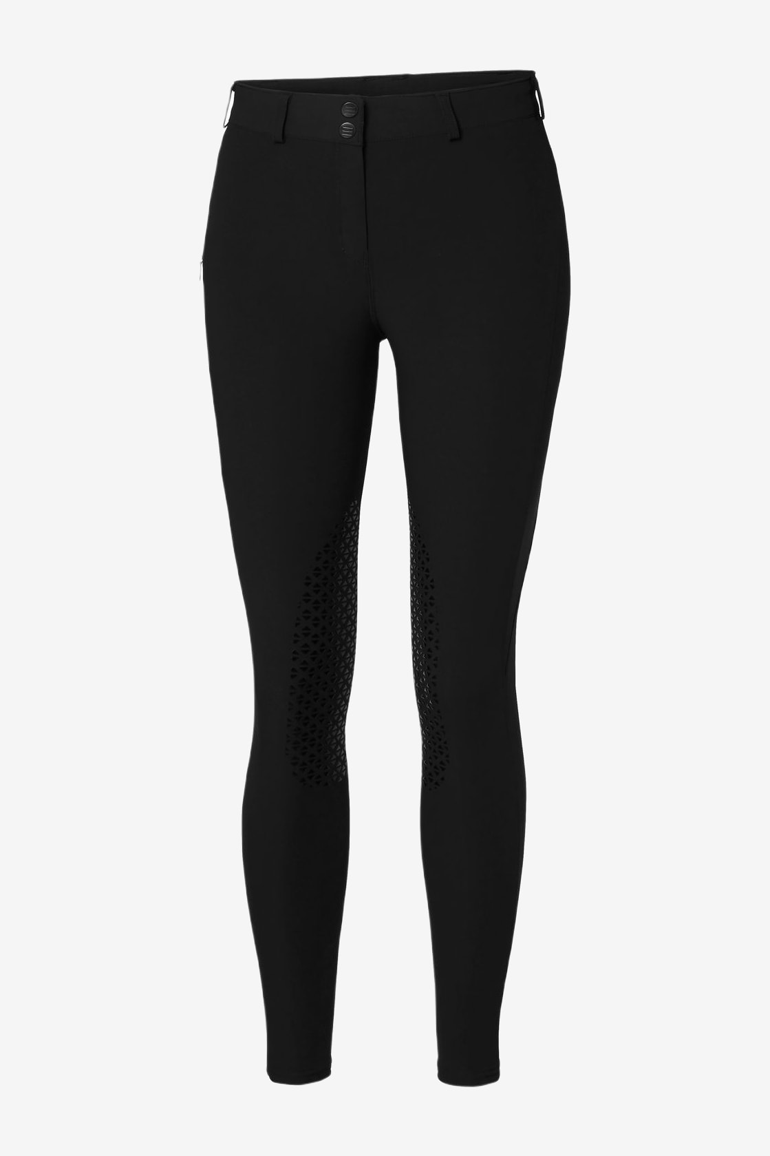Funktionale Reithose mit hohem Stretchanteil und Feuchtigkeitstransport. Mit Kniebesatz und Perfect grip™ Silikonbesatz. Ergonomische Passform und scheuerfreie Nähte.