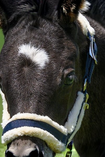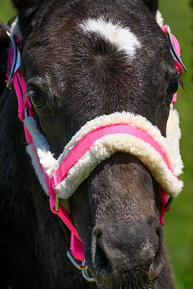 Fölgrimma med mjukt teddyfodrad nylon. Justerbar nos och på båda sidorna av nackremmen. Ganaschrem med skjuthake. Justerbar över nacken och runt nosen som ger ultimat passform.