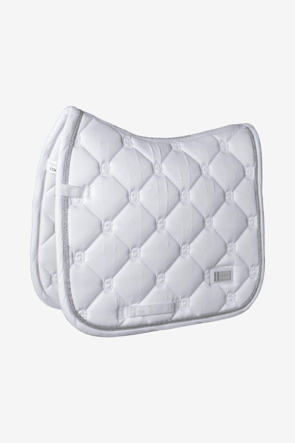 Klassisch geht nie falsch! Luxuriöse Dressur Schabracke, die perfekt auf dem Trainingsplatz passt. Wie alle anderen Schabracken hat auch diese ein sogenanntes Quick-Dry-Material auf der Innenseite, was es dem Pferd bei harten, schweißtreibenden Reiteinheiten erleichtert. Das Außenmaterial ist glänzend und schmutzabweisend. Kombinieren Sie gerne mit passenden Bandagen und Fliegenhaube, damit Sie und Ihr Pferd bereit für die Herausforderungen des Trainings sind!