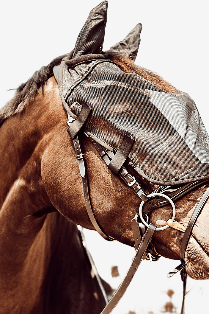 Praktiskt flughuva som fästs på träset för att skydda den känsliga hästen mot insekter vid ridning. Knäpp fast huvan med kardborre runt sidostyckena för att hålla den på plats.