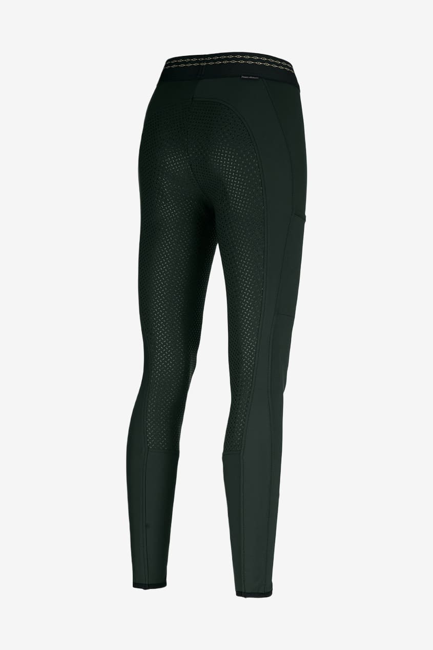 Das Modell Juli ist eine sportliche Reitleggings von Pikeur. Super dehnbar und dennoch formstabil, bietet sie hohen Komfort beim Reiten. Breiter elastischer Bund, der die Leggings sicher an Ort und Stelle hält und mit einem Logo schön verziert ist. Dezente Handytasche an der Seite. Weiche Beinabschlüsse sorgen für angenehmen Tragekomfort unter den Reitstiefeln und verhindern unangenehmen Druck.
