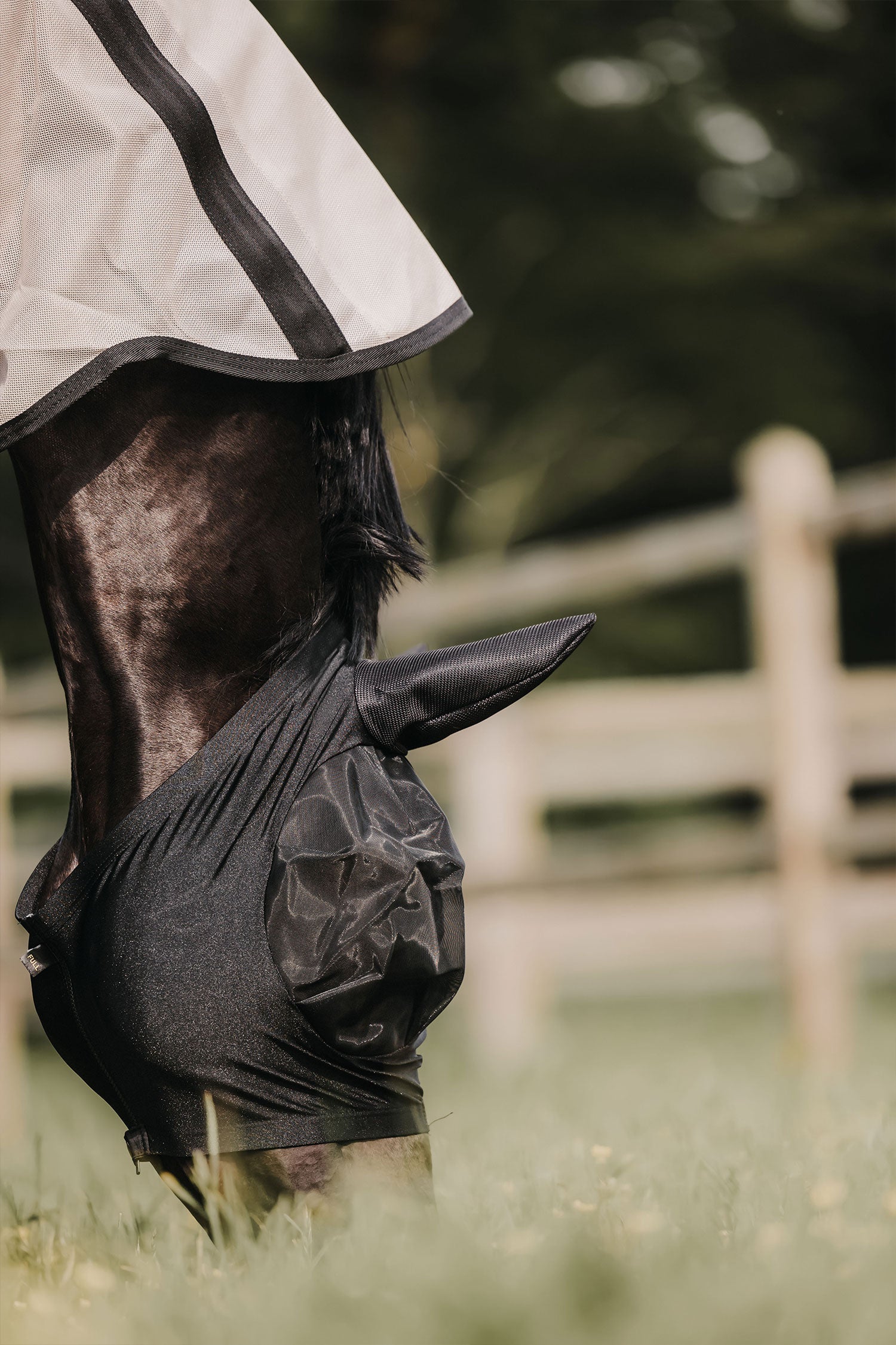 The Fly Mask has a convenient zipper to close the fly mask with, as well as a button. Also an opening for the forelock. Machine washable at 30° (no tumble dryer).