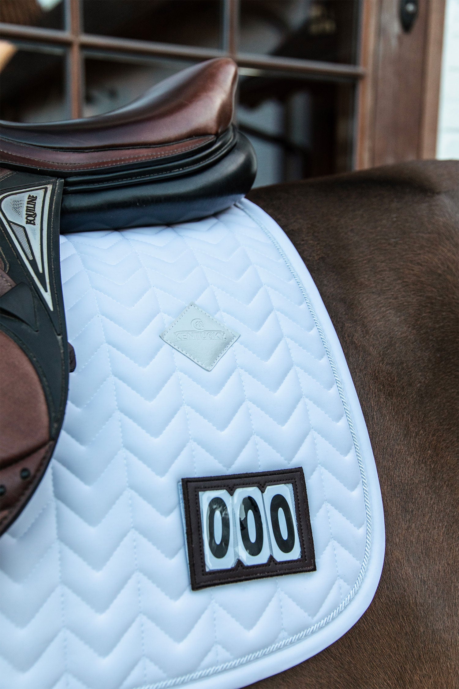 Hoppschabrak Fishbone från Kentucky horsewear är formad för hoppning och ger utmärkt dämpning mellan hästens rygg och sadeln samtidigt som den skyddar mot friktion.