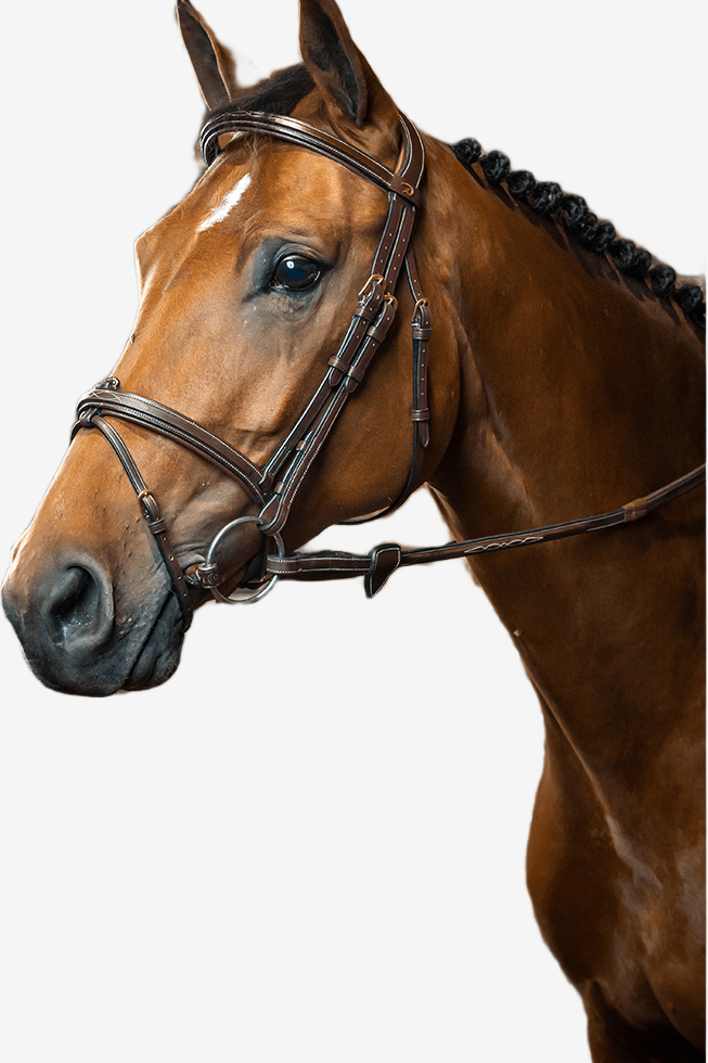 Träns Kombinerad Nosgrimma från Dyón Collection. Dyón har alltid haft fantastiska träns och nu har de kommit med ännu mer fantastiska nyheter. Nackstycket är smalare och mer anpassat efter hästens alla känsliga punkter på huvudet. Ett träns gjort på mjukt läder från Spanien med spännen i mässing samt fina vita mönstrade sömmar.