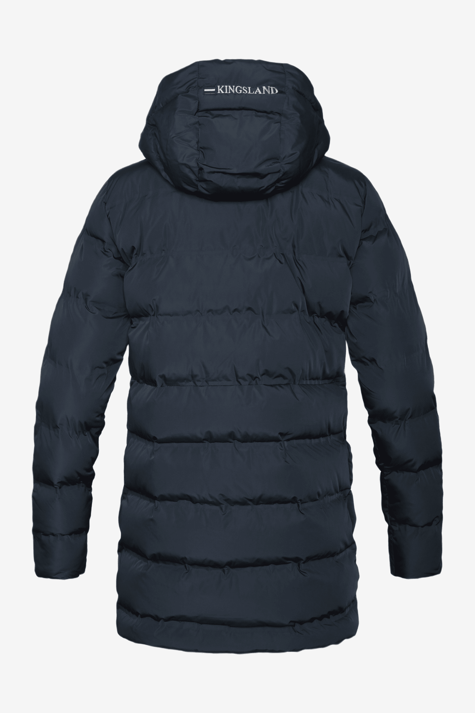 Vadderad jacka med klassiskt mönster i längre modell. Jackan andas och står emot vatten och vind väldigt bra (ej vattentät). Två stora härliga fickor på framsidan. Även en innerficka på vänster sida, som stängs med dragkedja. Snygg Kingsland logo framtill i samma färg som jackan. Muddar nere vid handleden som omsluter väldigt bra för dom lite kallare höst- och vinterdagarna.