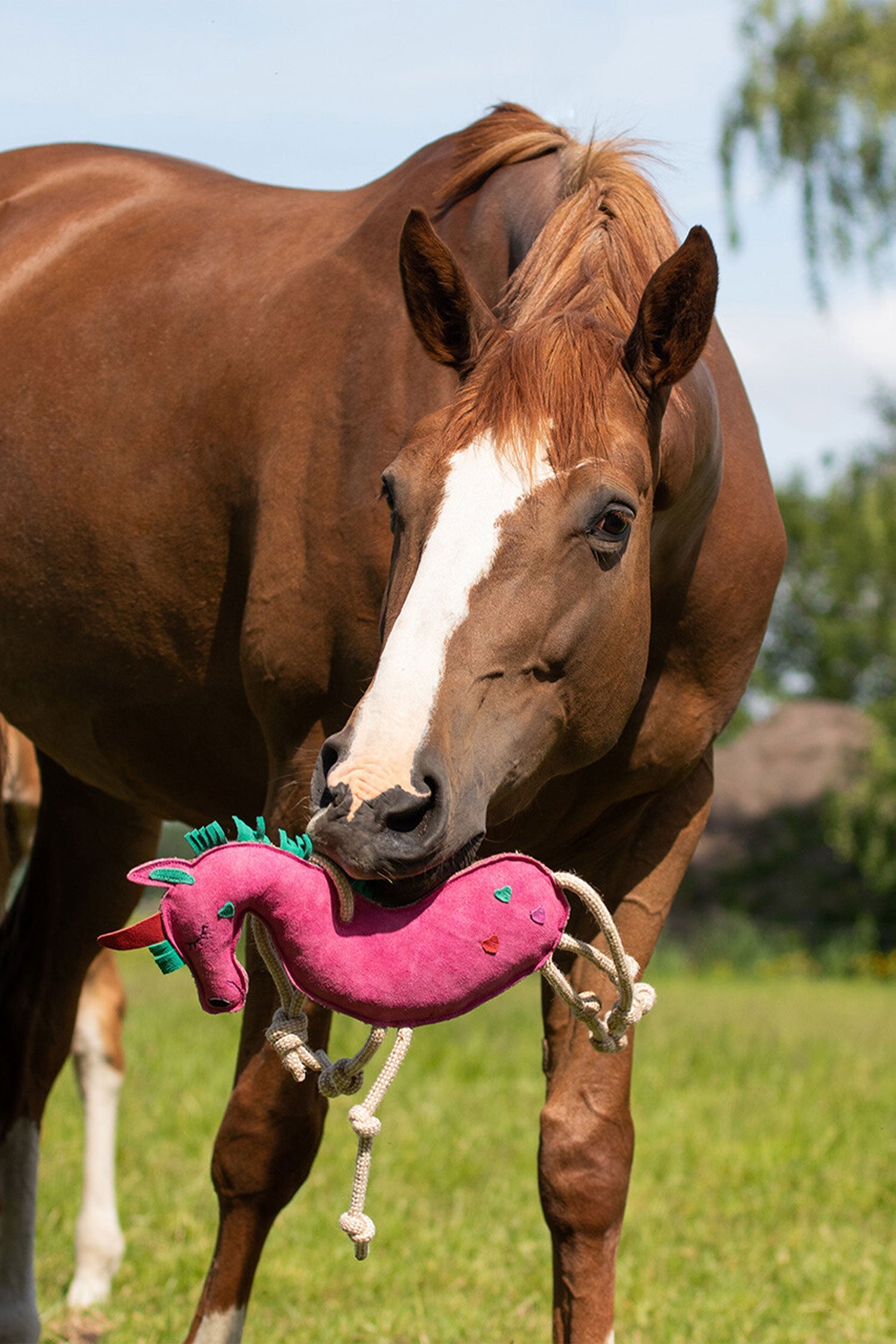 The perfect companion for your horse in the stable! Easy to hang up with a string. Safe for the horse! Helps prevent your horse from getting bored.