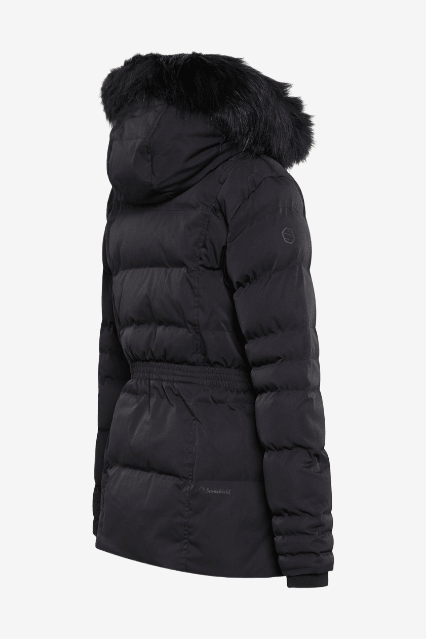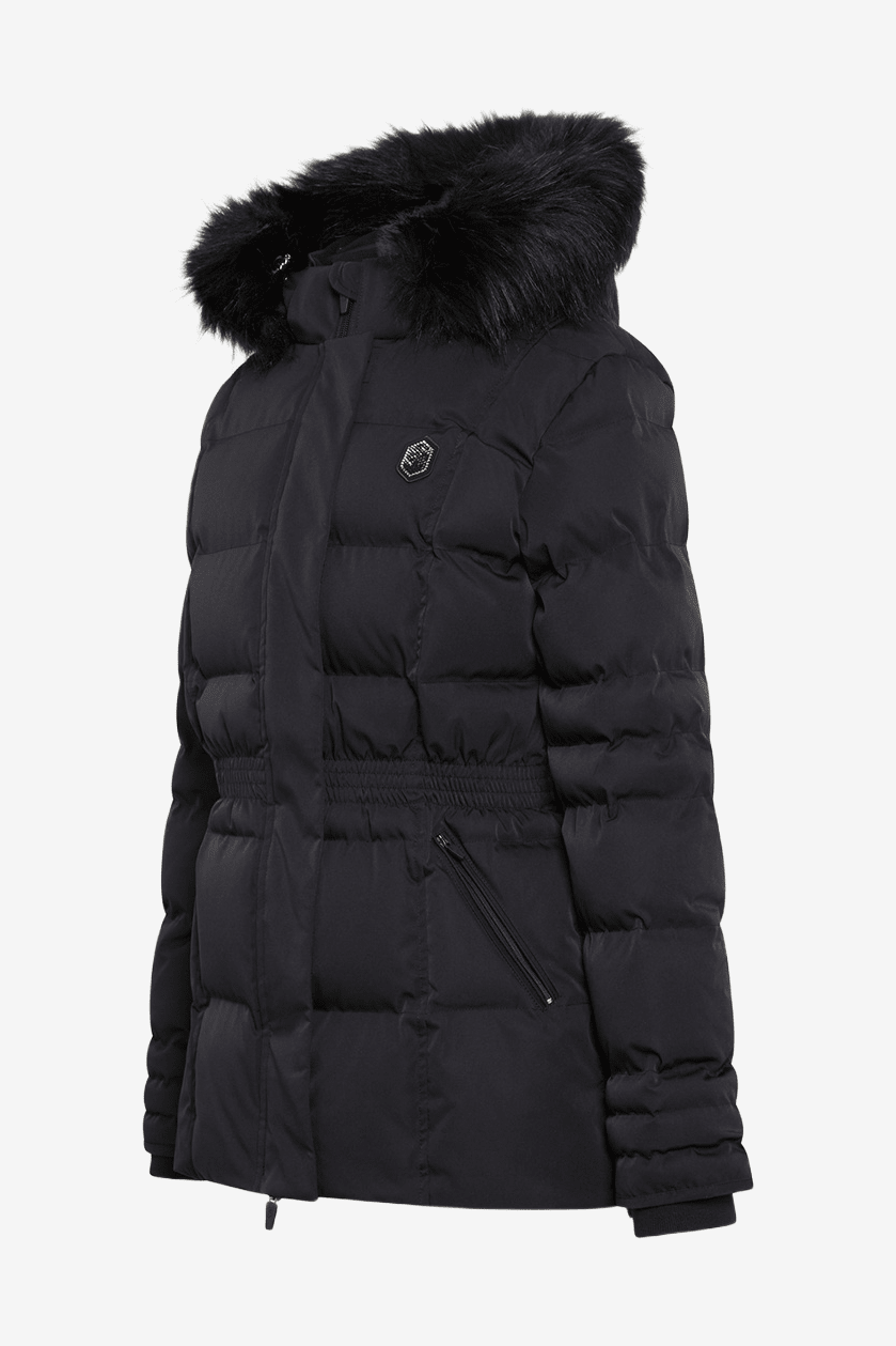 The Meribel winter jacket for women offers superb protection during the colder months, thanks to the lightweight yet insulating Dupont Sorona filling and the durable, water-repellent fabric. This coat has high breathability, is quick-drying and durable without compromising on style. The cinched waist provides a flattering fit and the Swarovski Samshield logo adds style to the look. Double cuffs act as wind stoppers, the jacket is equipped with a two-way zipper and the side zippers allow for comfortable use during riding.