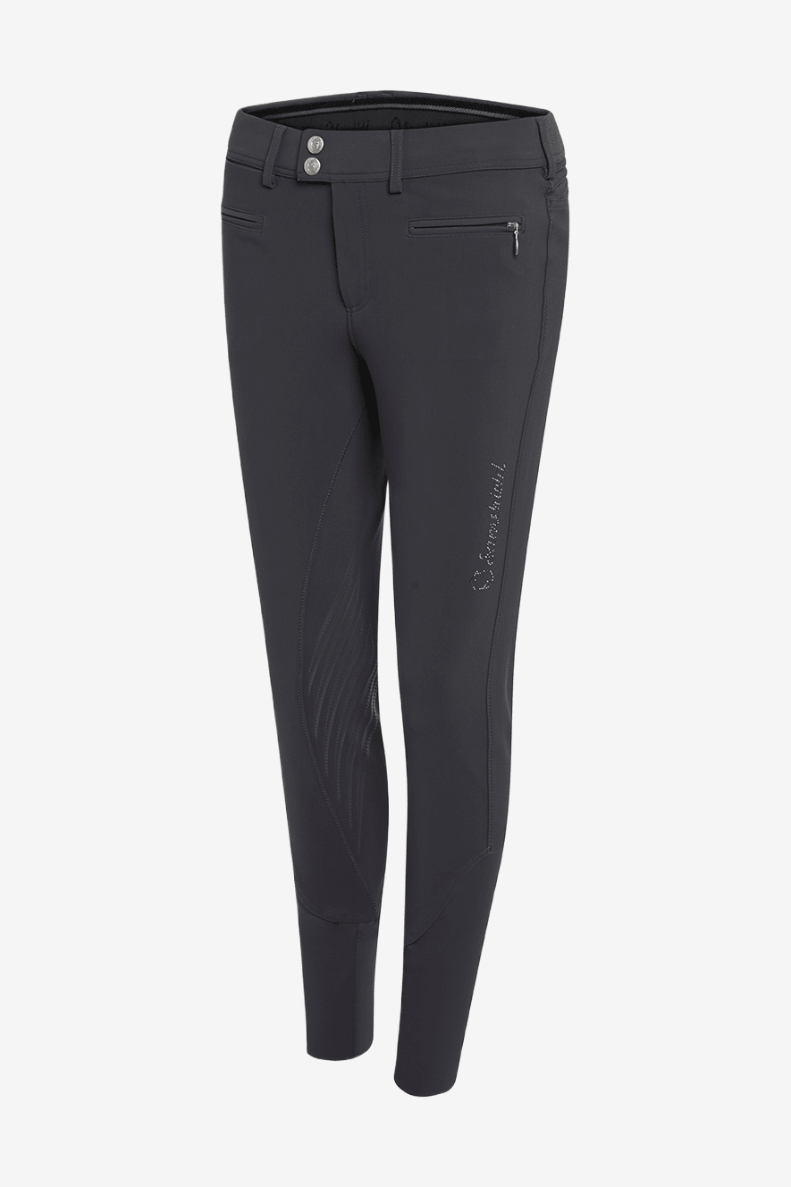 The Adele riding breeches with knee grip are made of high-stretch, breathable Italian fabric that provides a comfortable feel for the rider with exceptional freedom of movement. Body temperature regulating technology wicks away moisture and keeps the skin dry. The breeches are equipped with fantastic Swarovski details, adding style and elegance with the full Samshield logo on the leg and Swarovski Crystal Fabric details on the back.