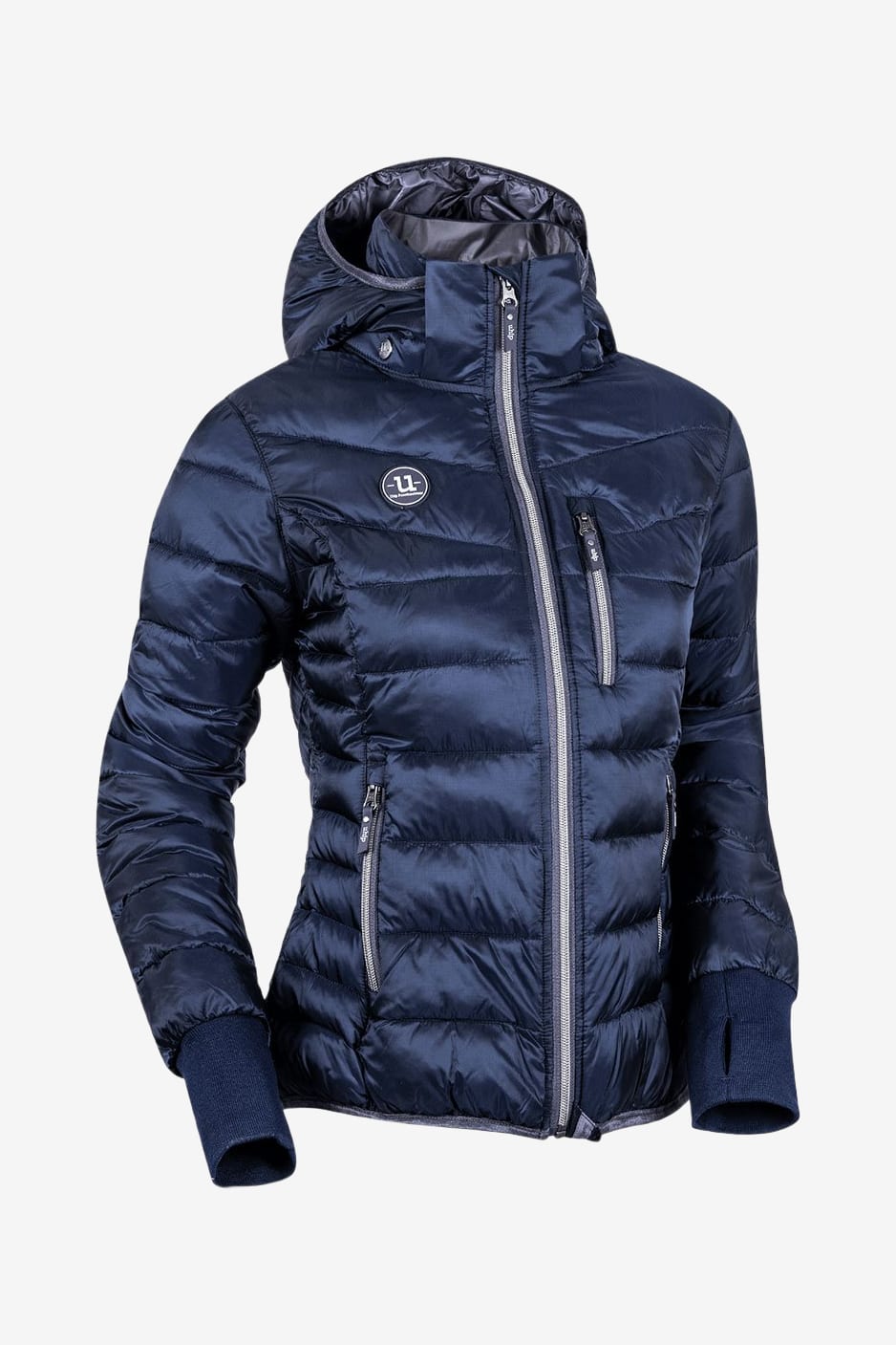 - Extended sleeves with ribbed wrist warmers and thumb holes