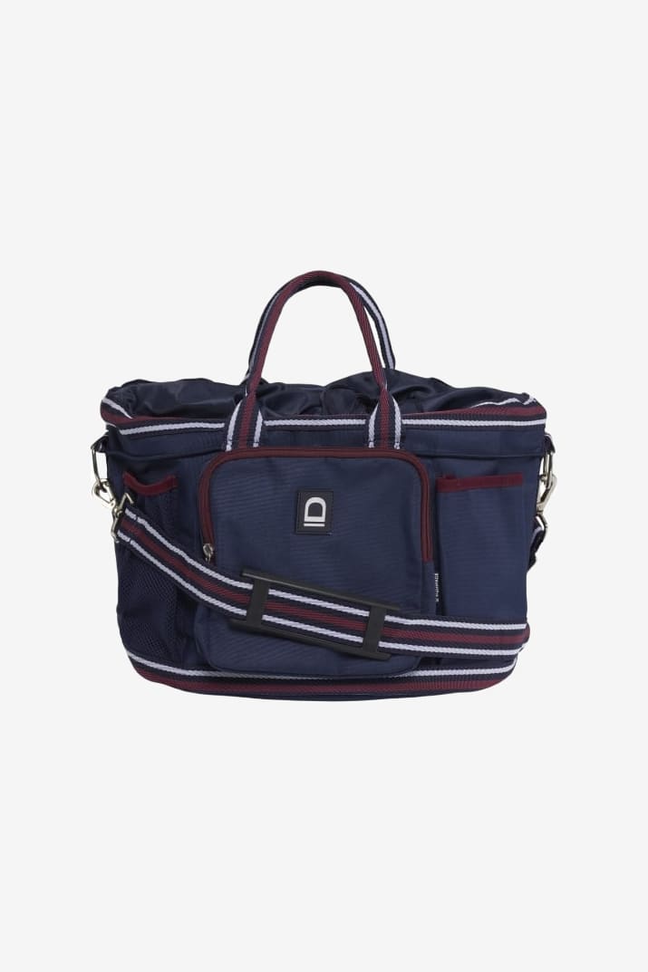 Sac de pansage pratique de la marque Equipage en matériau résistant. Plusieurs poches autour et à l'intérieur pour un tri et un rangement facilités. Le sac se ferme avec un cordon de serrage pour éviter que les brosses ne tombent. Bandoulière réglable et poignée pour un transport facile.