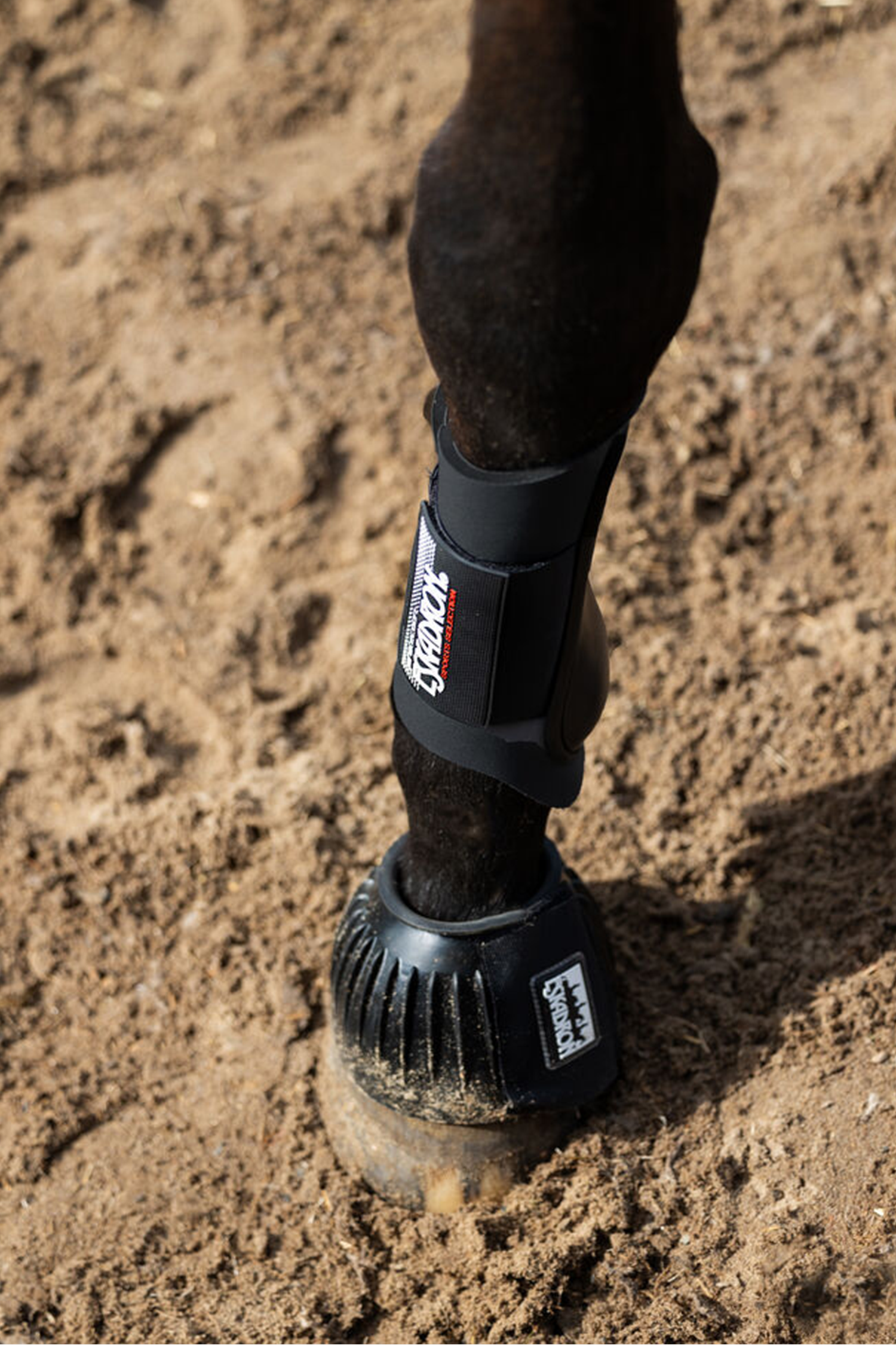 Klassiska damasker med mjuk insida av neopren som formar sig efter hästens ben och ger komfort och stöd. Extra förstärkt på insidan av stötdämpande gummi så hästen skyddas mot onödigt slag eller slitage på leder och senor. Slitstarkt kardborreknäppe som är dubbelvikt.