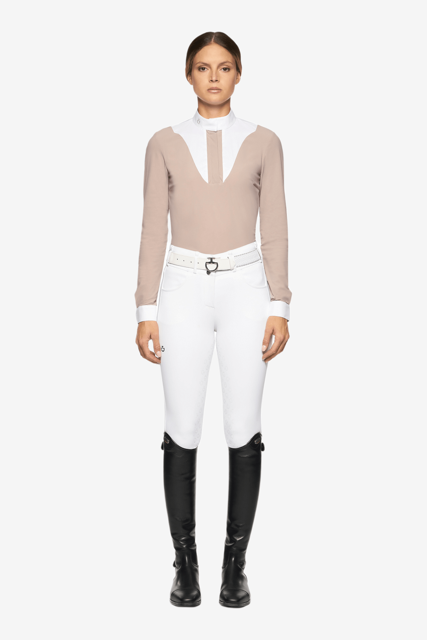 En otroligt snygg tävlingsskjorta från Cavalleria Toscana med lång ärm i stilrent beige.