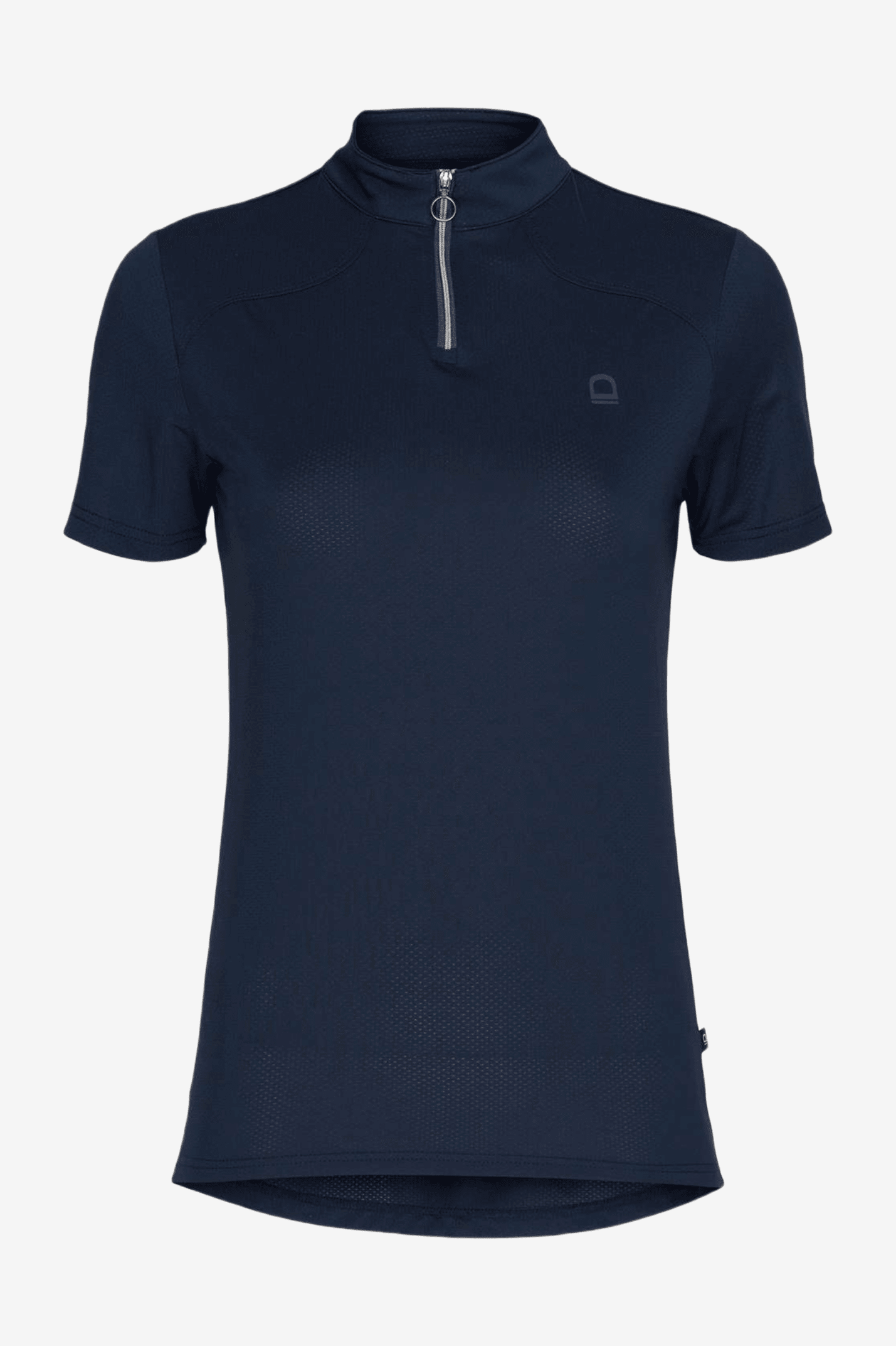 Sportig och klassisk t-shirt från Equipage. T-shirten har en halv dragkedja framtill och är tillverkad av mjuk och stretchig polyester. Tyget har små hål för oöverträffad ventilation, vilket gör den perfekt för varma sommardagar i sadeln.