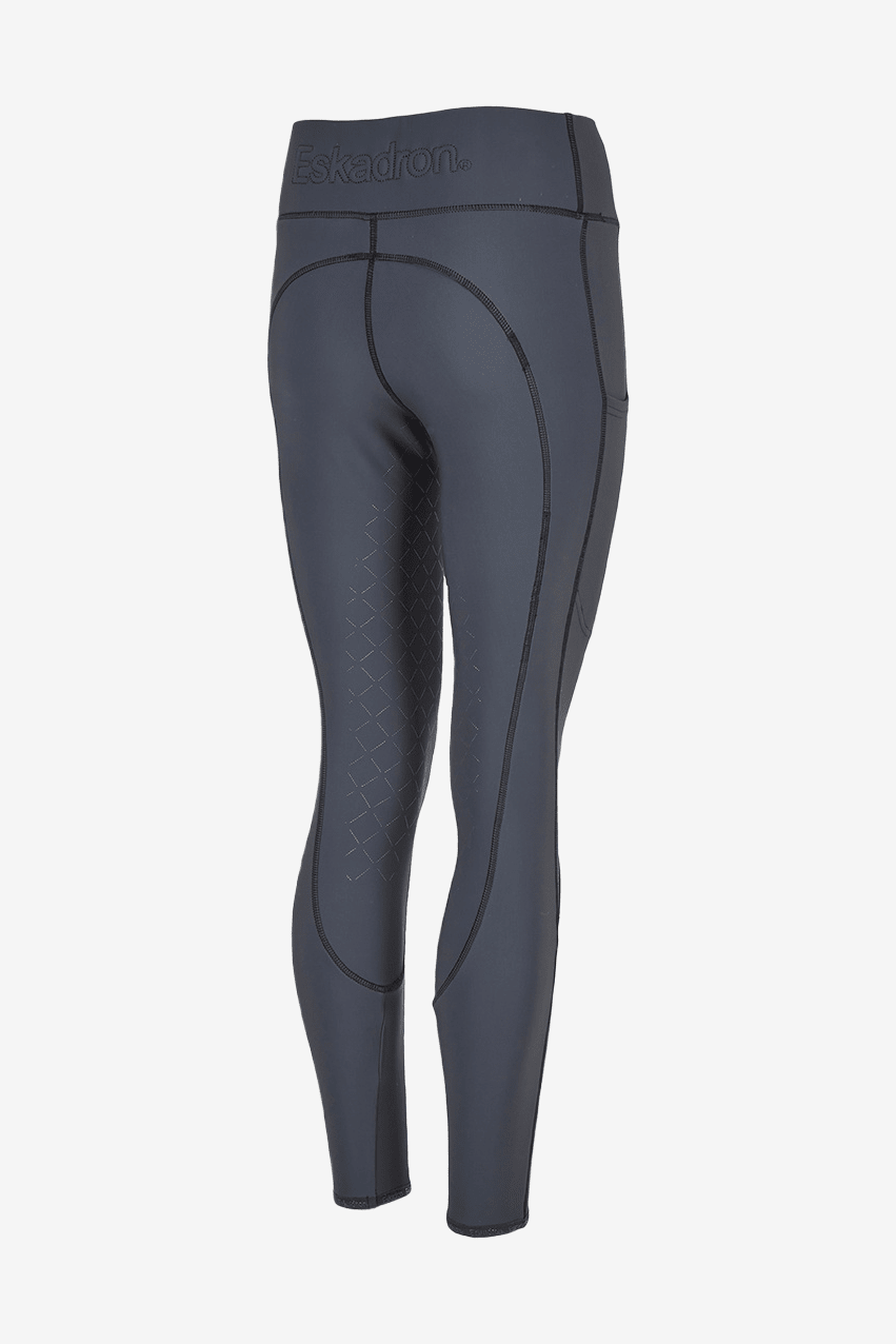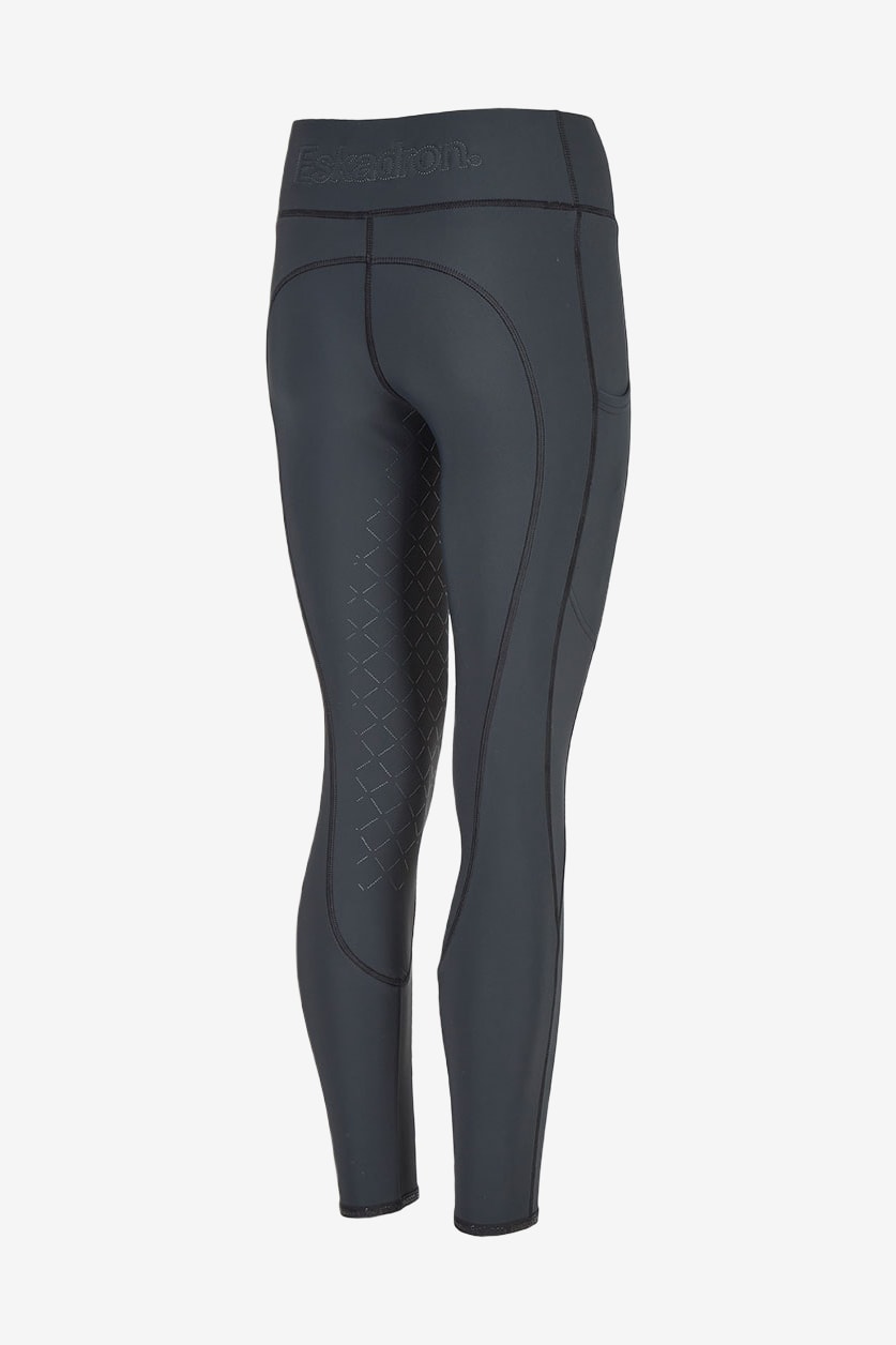Collants confortables en tissu extensible 4 directions de haute qualité, dans une matière légèrement plus épaisse. L'intérieur gratté offre une chaleur supplémentaire ainsi qu'un effet sculptant pour une meilleure stabilité et un meilleur confort. Les poches pour téléphone portable sur les deux cuisses permettent d'emporter facilement votre téléphone lors de la monte. Les collants ont une large ceinture avec un logo dans le dos. Un logo imprimé se trouve sur la cuisse gauche et les collants sont également dotés d'un fond intégral en silicone pour une excellente adhérence en selle.