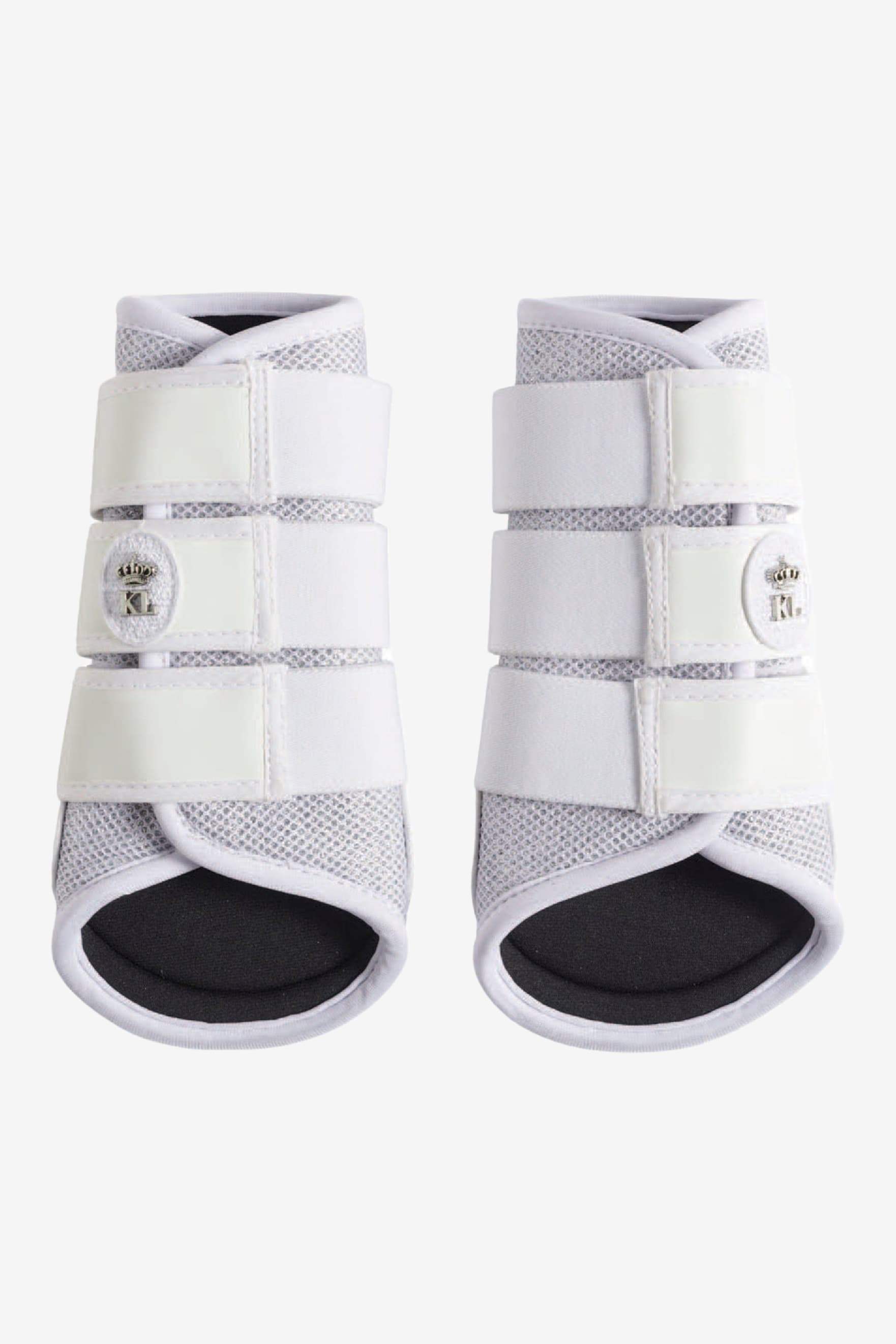 Avec une base blanche et un matériau en mesh avec des accents pailletés, ces bottes se démarquent de la foule. Le néoprène doux contre le cheval offre un grand confort et une excellente absorption des chocs. Fermeture sécurisée par de solides bandes Velcro et recouvertes d'un élégant logo KL. Vendues par paire.