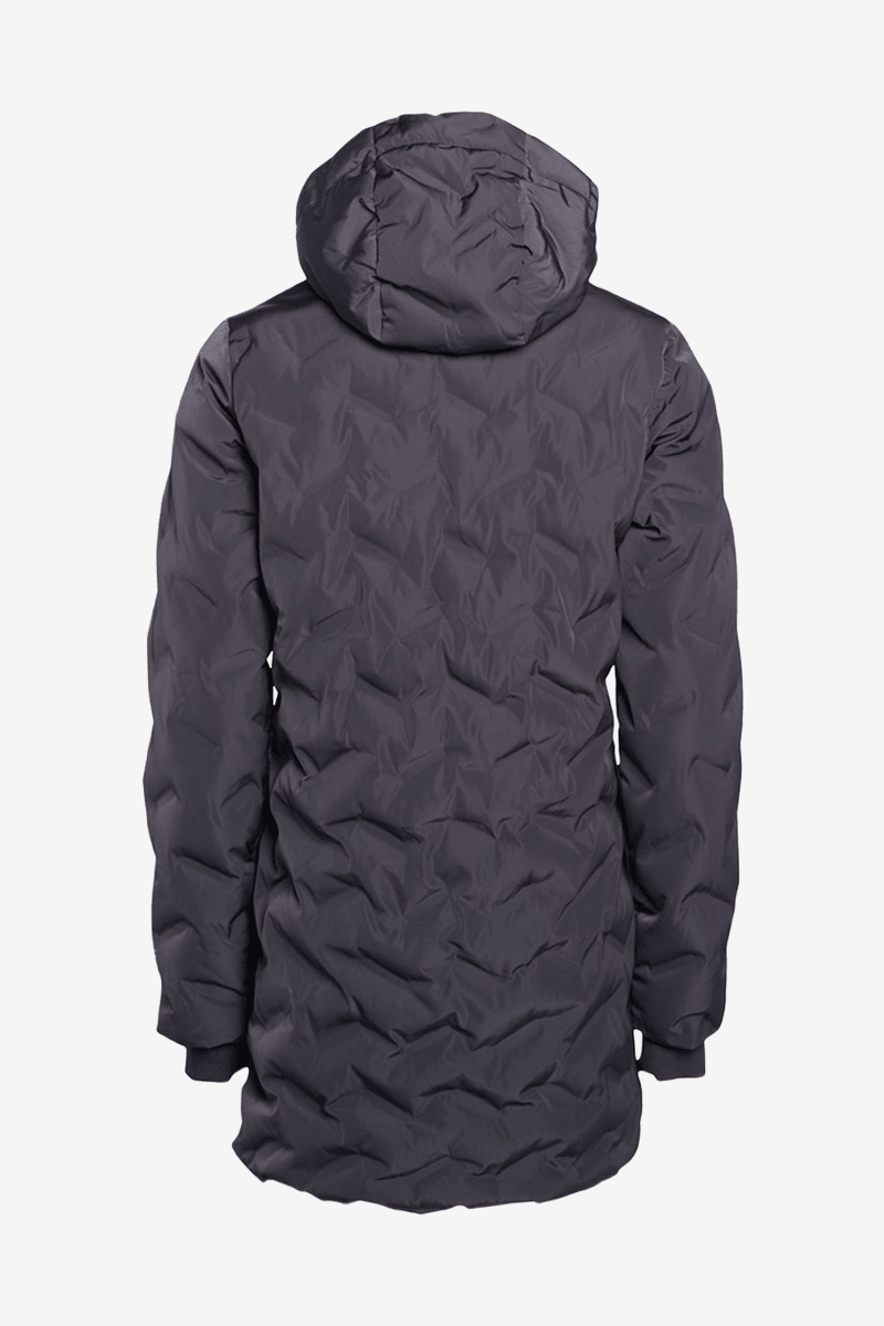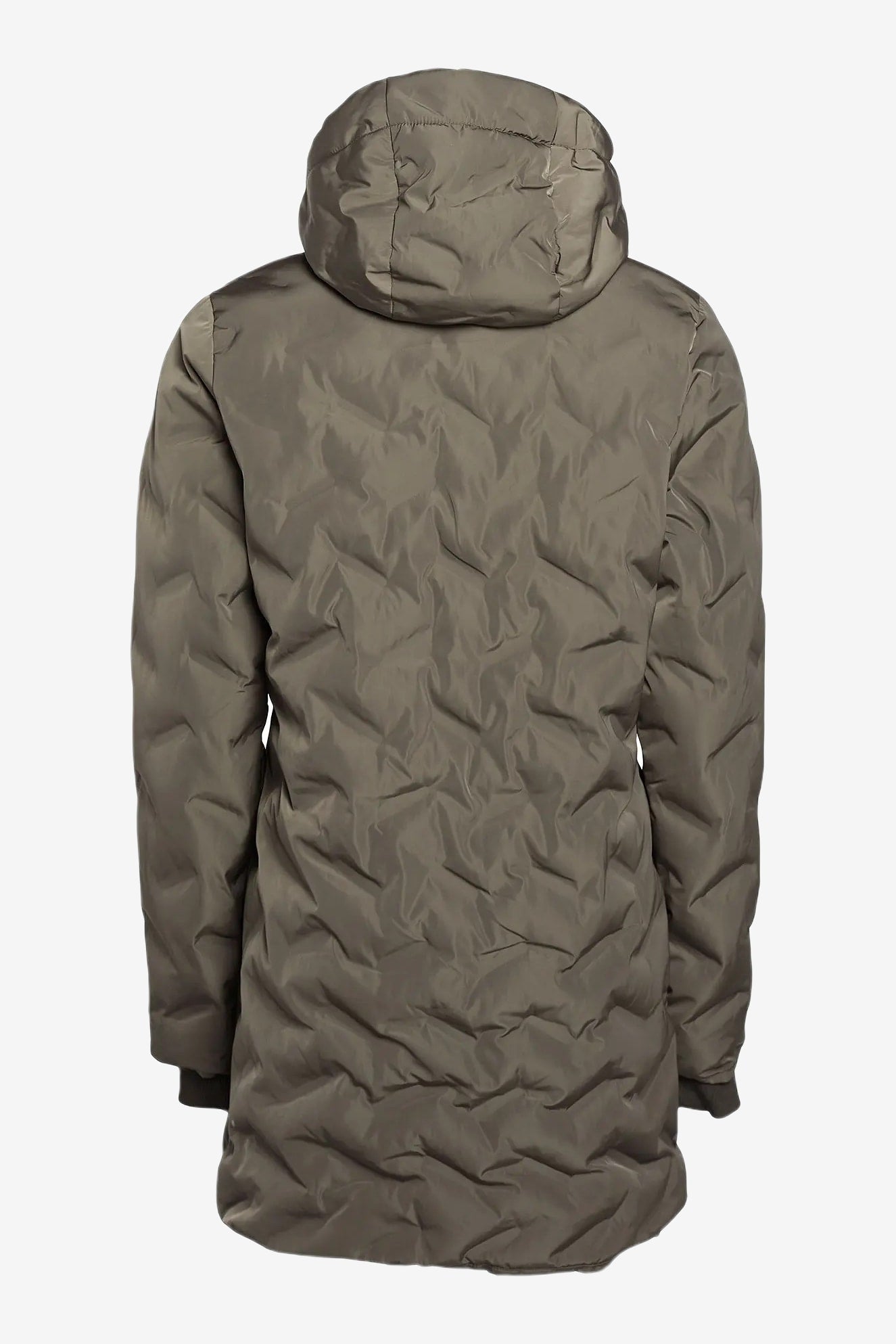 Veste matelassée avec un motif extérieur façon quilt dans une coupe longue. La veste est respirante et résiste très bien à l'eau et au vent. Deux poches à l'avant qui se ferment avec des fermetures éclair. Également une poche intérieure sur le côté gauche, qui se ferme aussi avec une fermeture éclair.