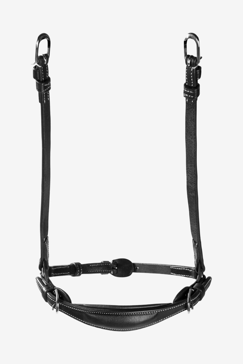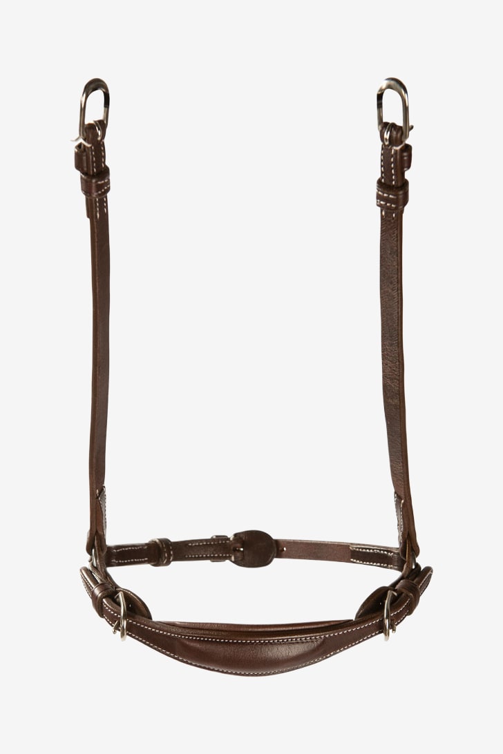 Muserolle allemande réglable sans têtière. Fabriquée en cuir américain conforme REACH. Boucles en acier inoxydable argentées.