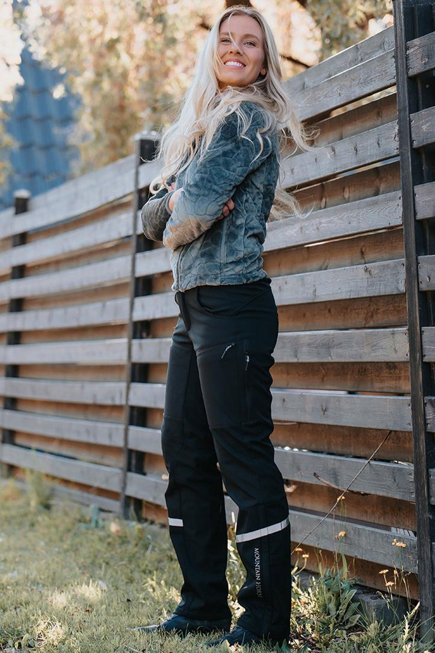 Bekväma softshell-byxor med ventilationsfickor från Mountain Horse.