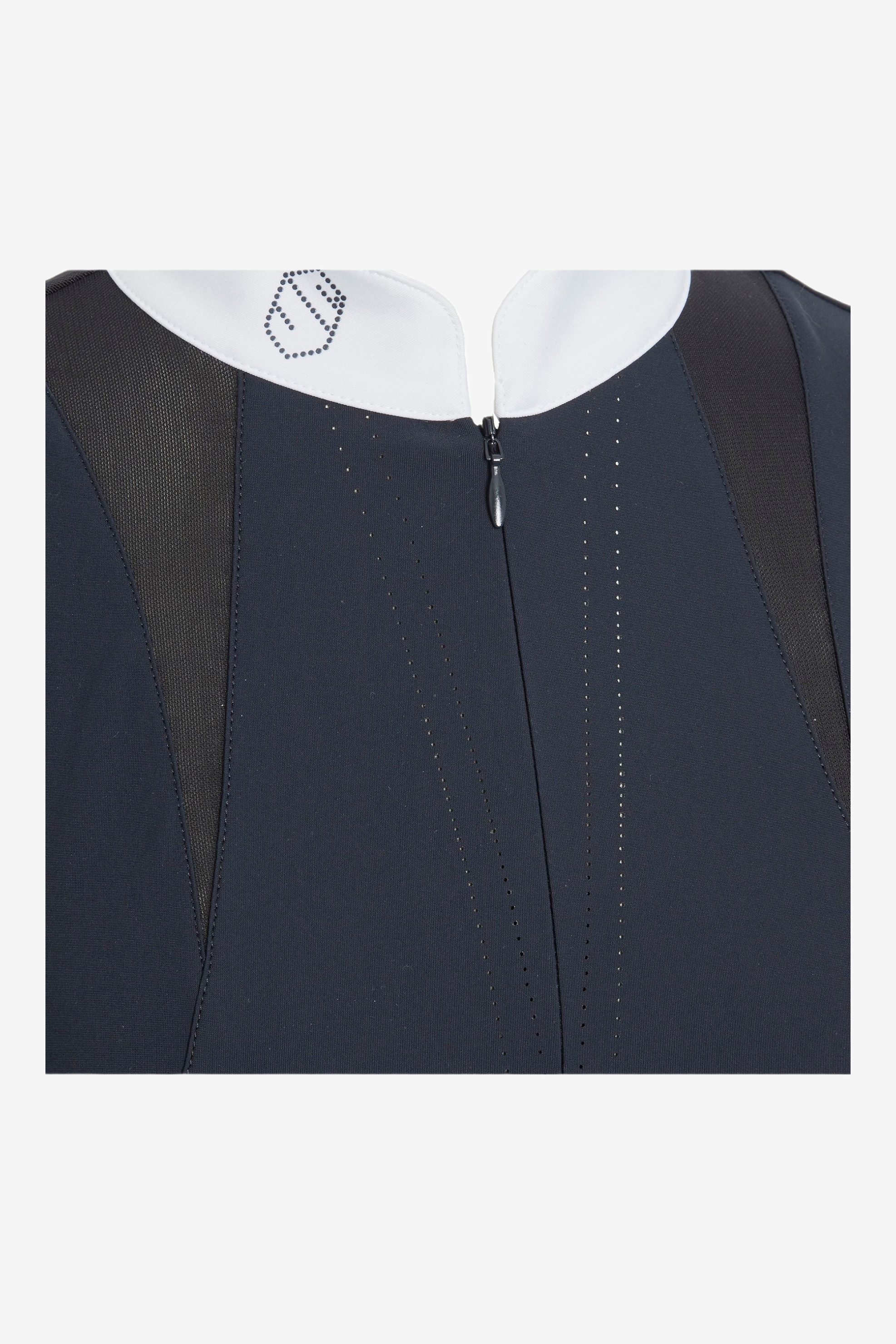Matière technique qui évacue rapidement l'humidité de votre corps vers l'extérieur du tissu, vous gardant ainsi au sec et au frais. Panneaux contrastés en mesh sur les côtés de la poitrine et lignes perforées à l'avant pour une meilleure aération. Fermeture éclair discrète à l'avant pour un look élégant. Logo en clous sur le col.