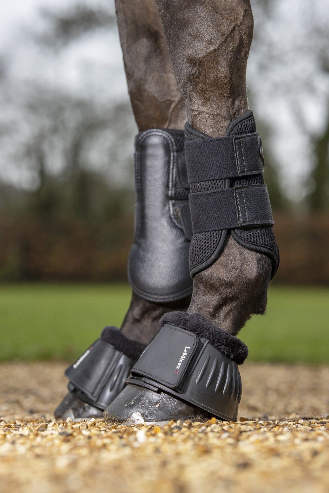 Ongelooflijk slimme gamaschen van LeMieux van uitstekende kwaliteit voor training en wedstrijd. Lichtgewicht bescherming met een geperforeerde, ademende voering, beschermende vezels in PU-leer en slimme PU-leren riemen.