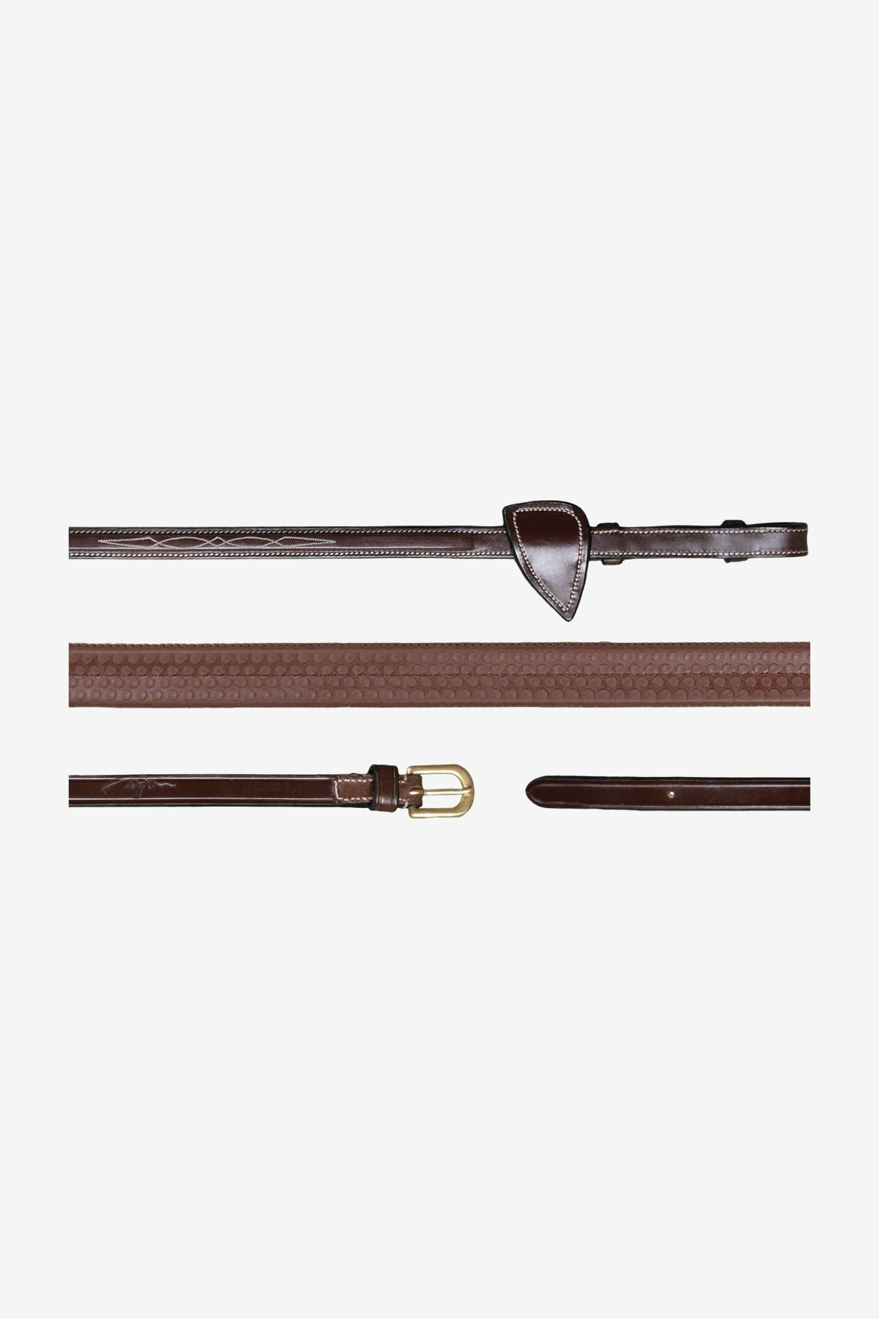 Populär gummitygel från Dyon Collection. Tillverkad i fint läder med inåtvända spännen i mässing. Tygeln har en vit mönstersöm och läckert designade martingalstoppar. Tjockleken på tygeln är 16 mm.