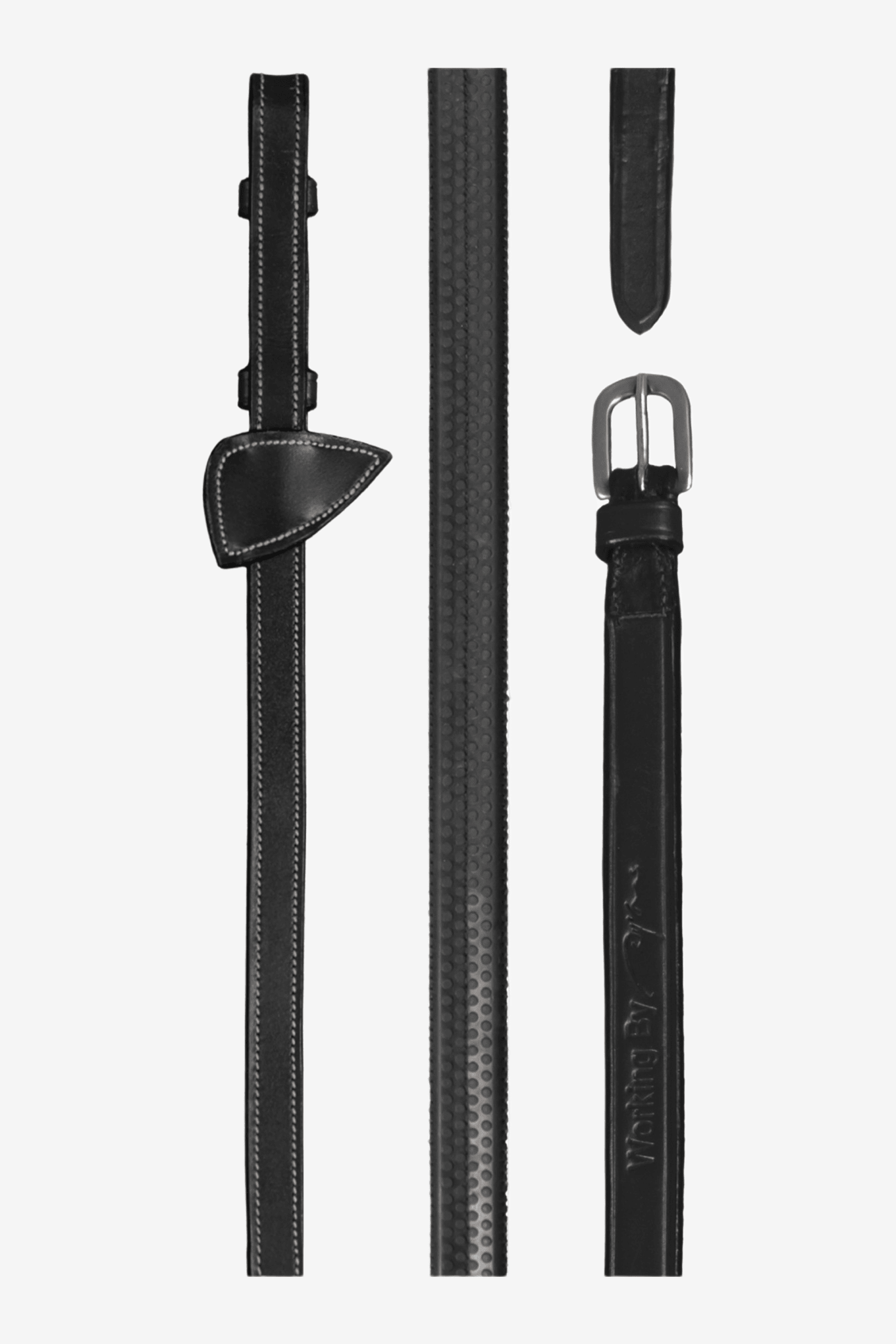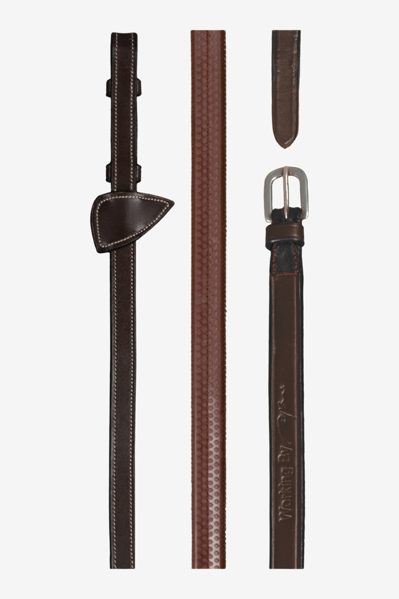 Dy'on | Working by Dy'on – 1/2" rubberen teugels zijn duurzame en gripvaste teugels, ontworpen om op alle hoofdstellen en stang & trens in de Working by Dy’on-collectie te passen. Ze zijn 1/2” breed en uitgerust met Dy’on-stops, wat zorgt voor een stabiele grip en extra veiligheid, zelfs tijdens intensieve ritten of onder veeleisende weersomstandigheden.