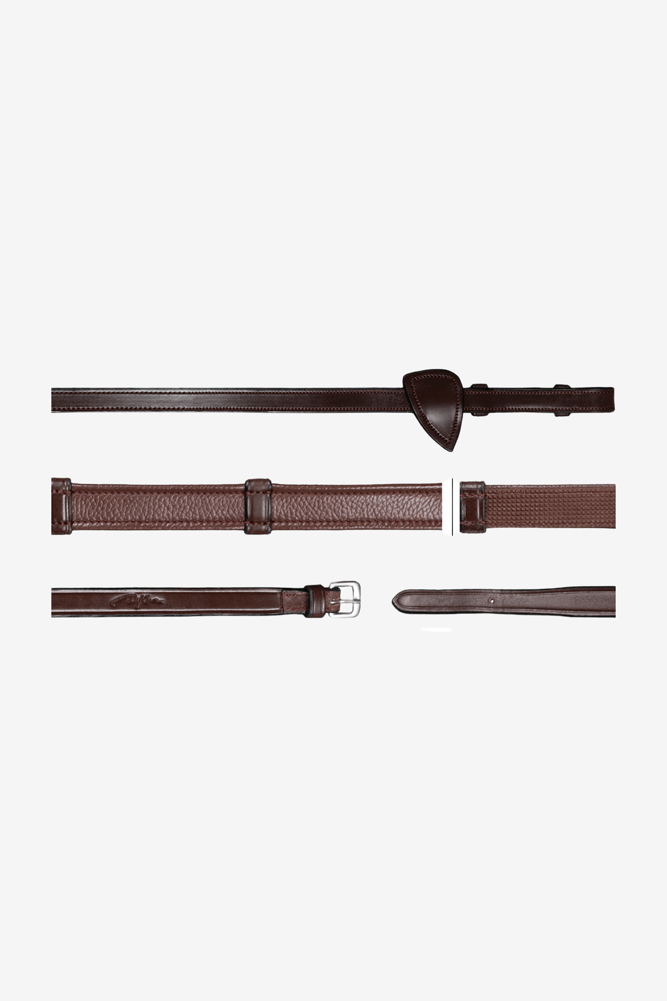 Dy’on New English Collection 5/8” hunterteugels met 7 leren stops zijn de perfecte keuze voor ruiters die stijlvolle en functionele teugels zoeken met extra veiligheid en grip. Gemaakt van Europees premium leer en uitgerust met 7 gelijkmatig geplaatste stops, bieden deze teugels een duidelijke en stabiele verbinding tussen paard en ruiter.