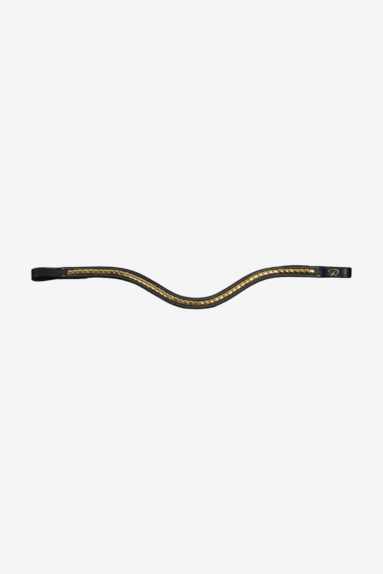 Gebogen frontriem met messing studs en messingdetails. Elegante vorm en gemaakt van Spaans leer met messing studs.
