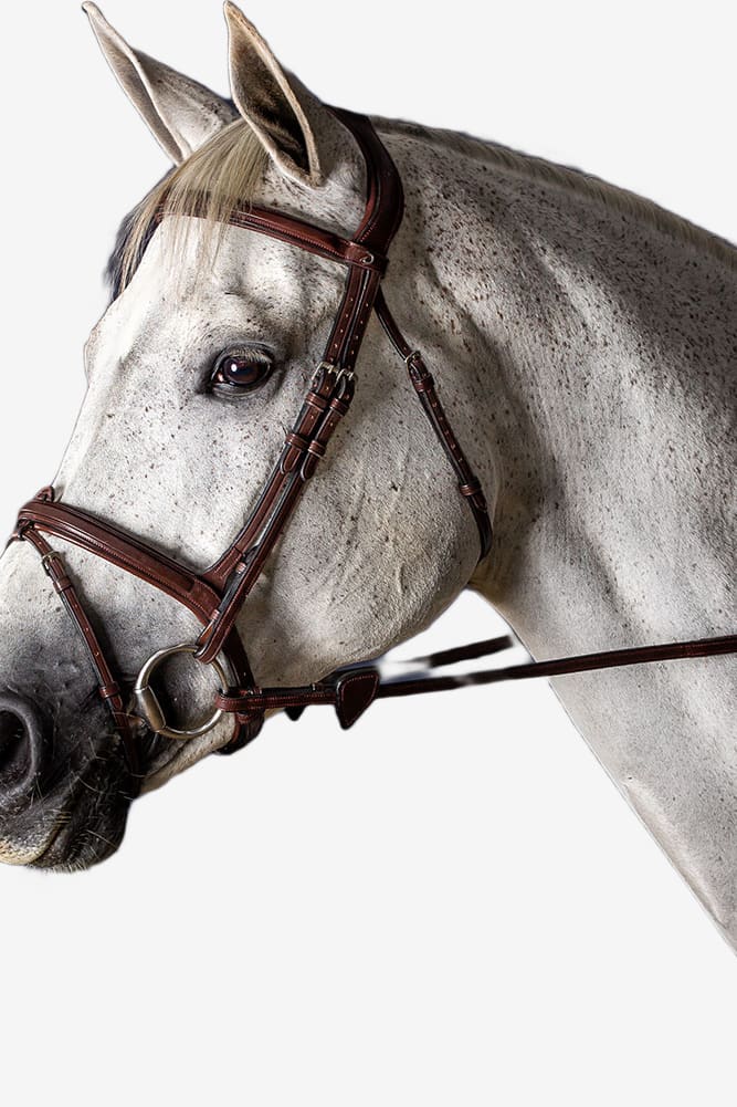 Ett träns gjort på mjukt läder från Spanien med spännen i silver samt fina arbetade detaljer.