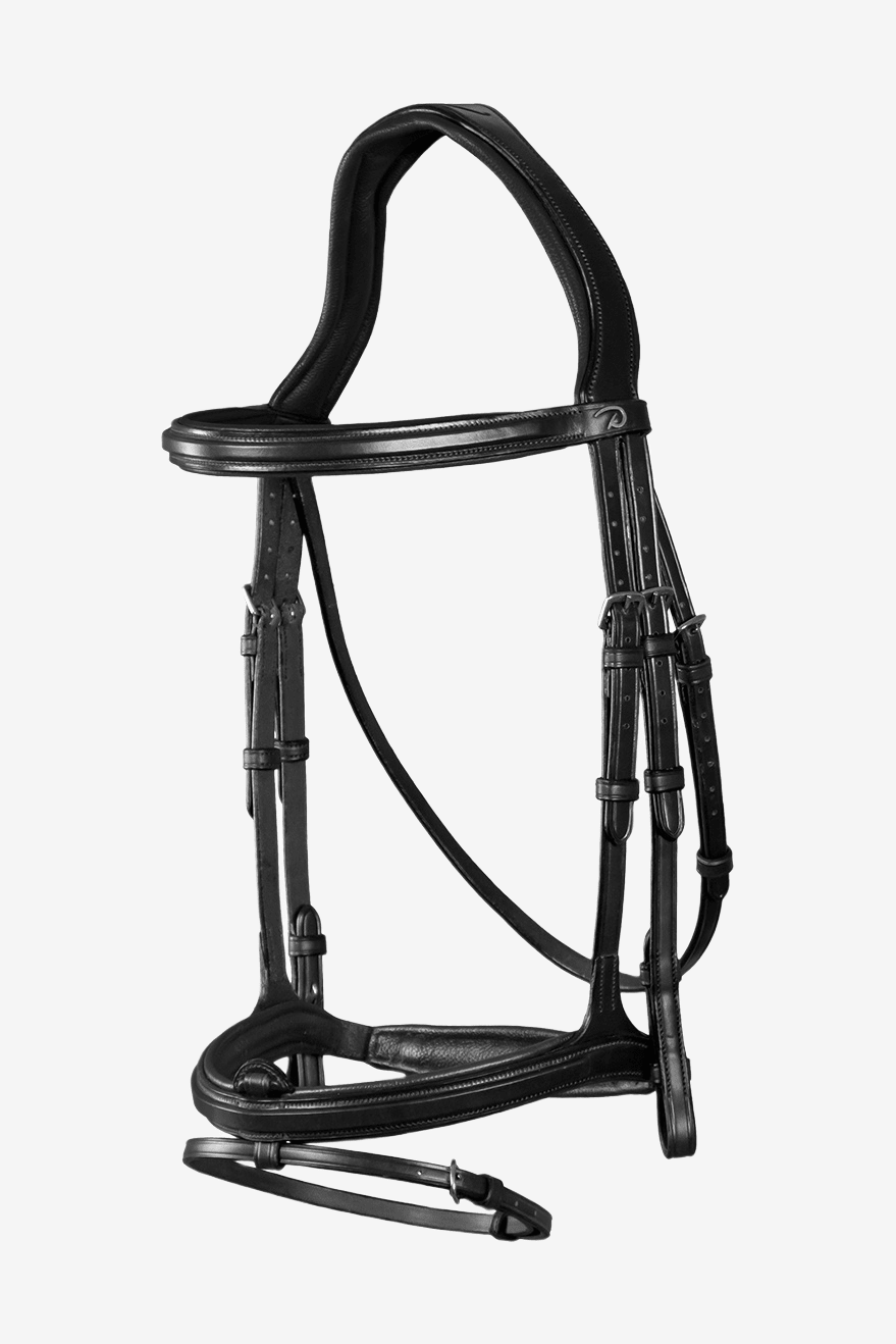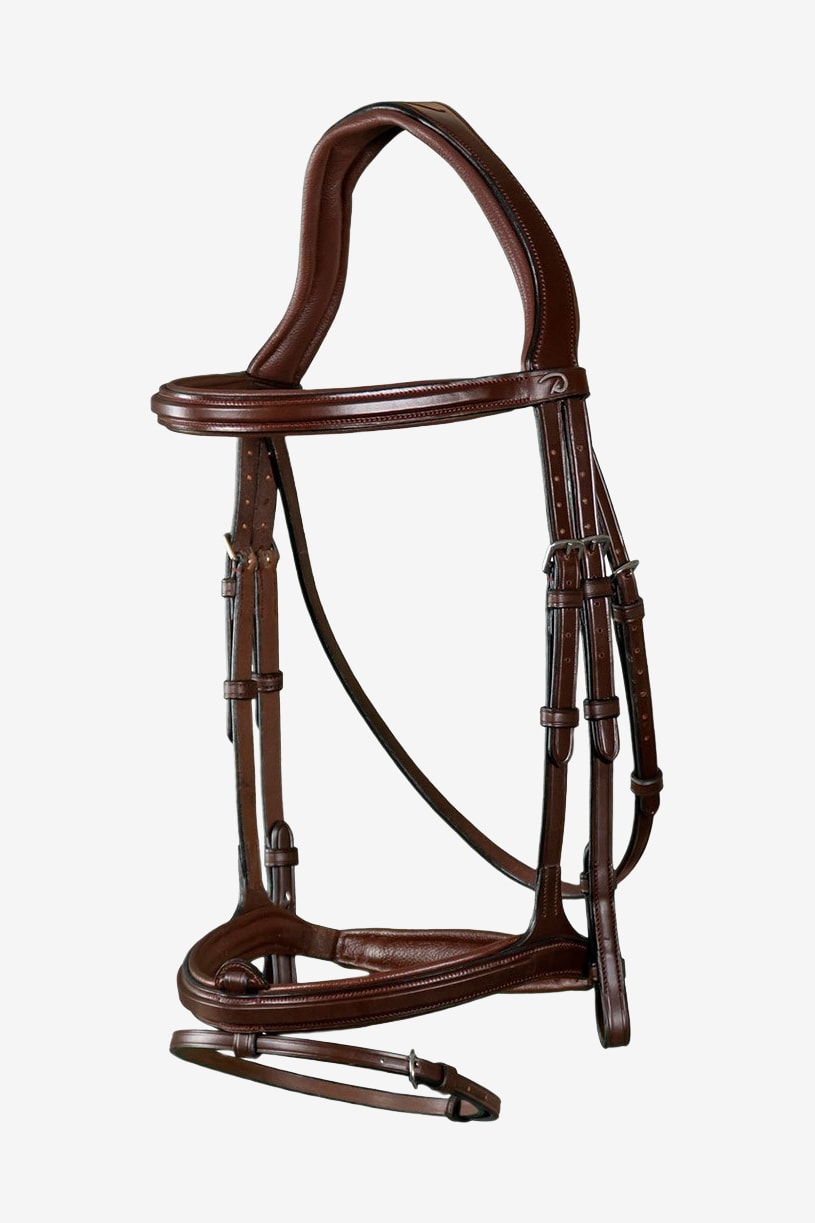 Brunt Dyón träns med kombinerad nosgrimma från Dyón New English Collection.