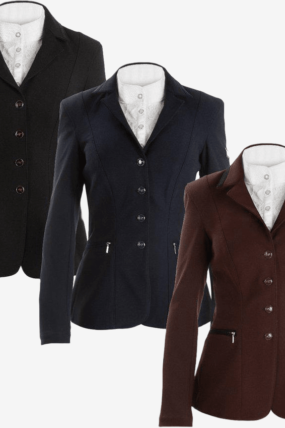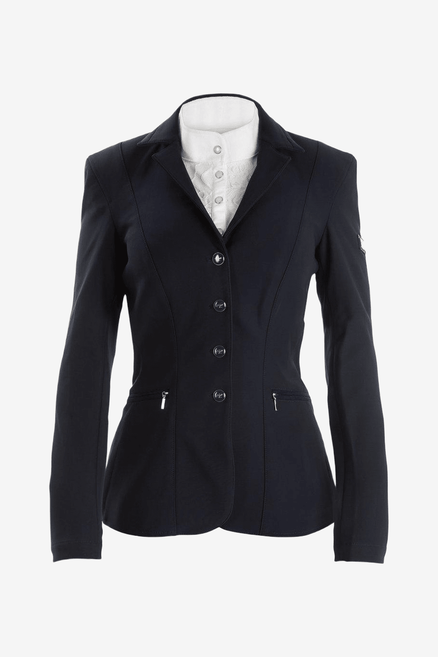 Getailleerde wedstrijdjas in een stijlvol design van Horse Life. Twee zakken met rits aan de voorkant. Sluiting met vier knopen. Stijlvolle sierstiksels aan de voorkant.
