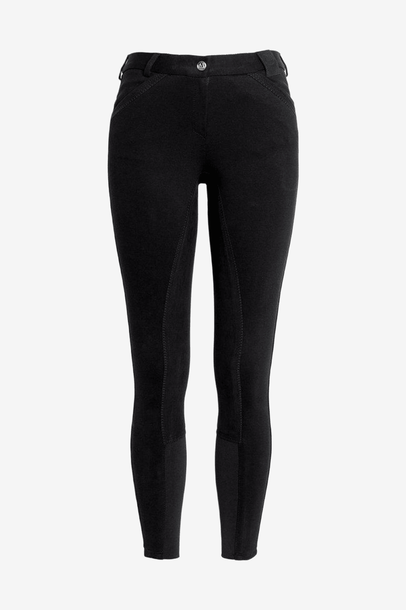 Een klassieke rijbroek in een katoenmix. Volledig zitvlak van imitatieleer.