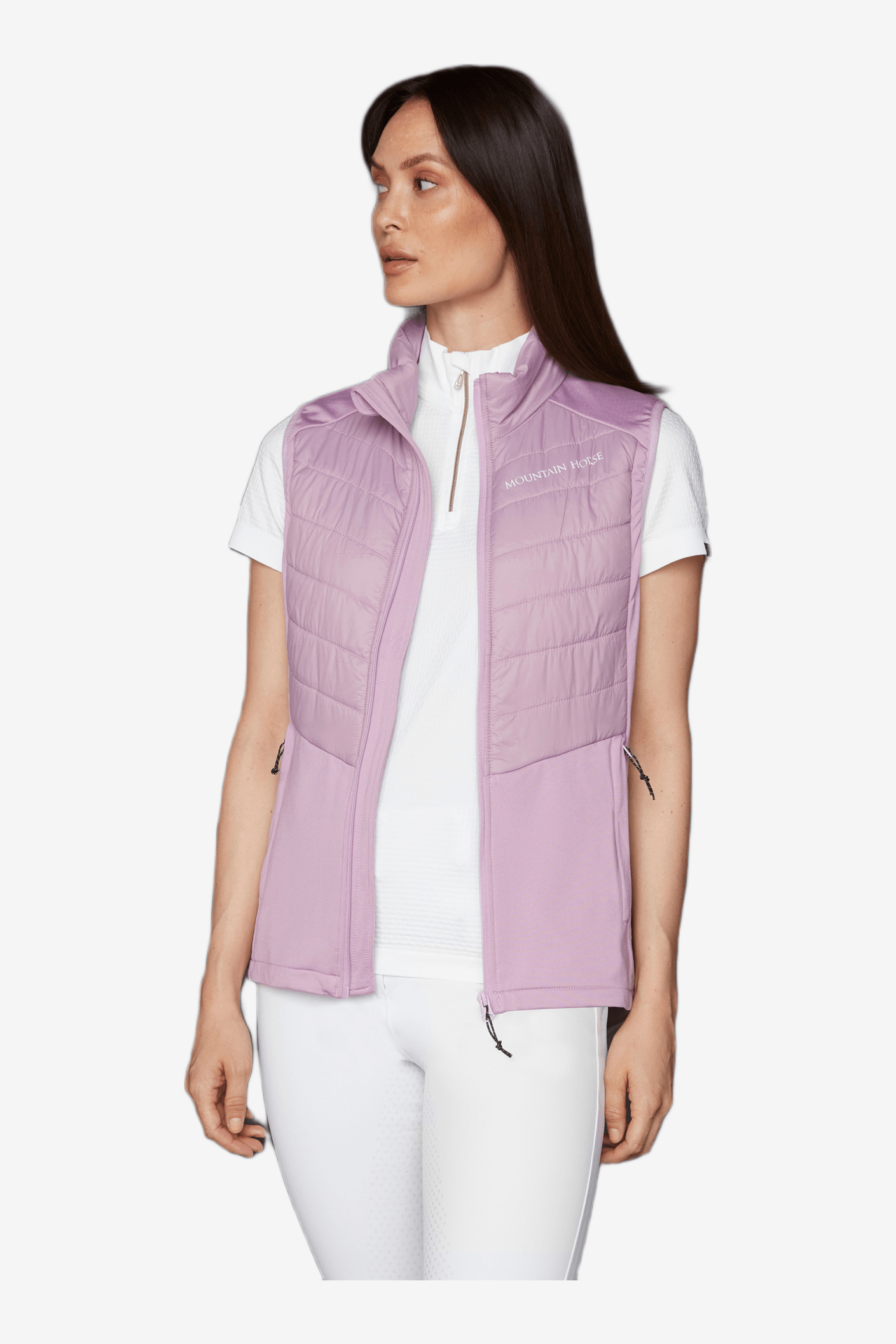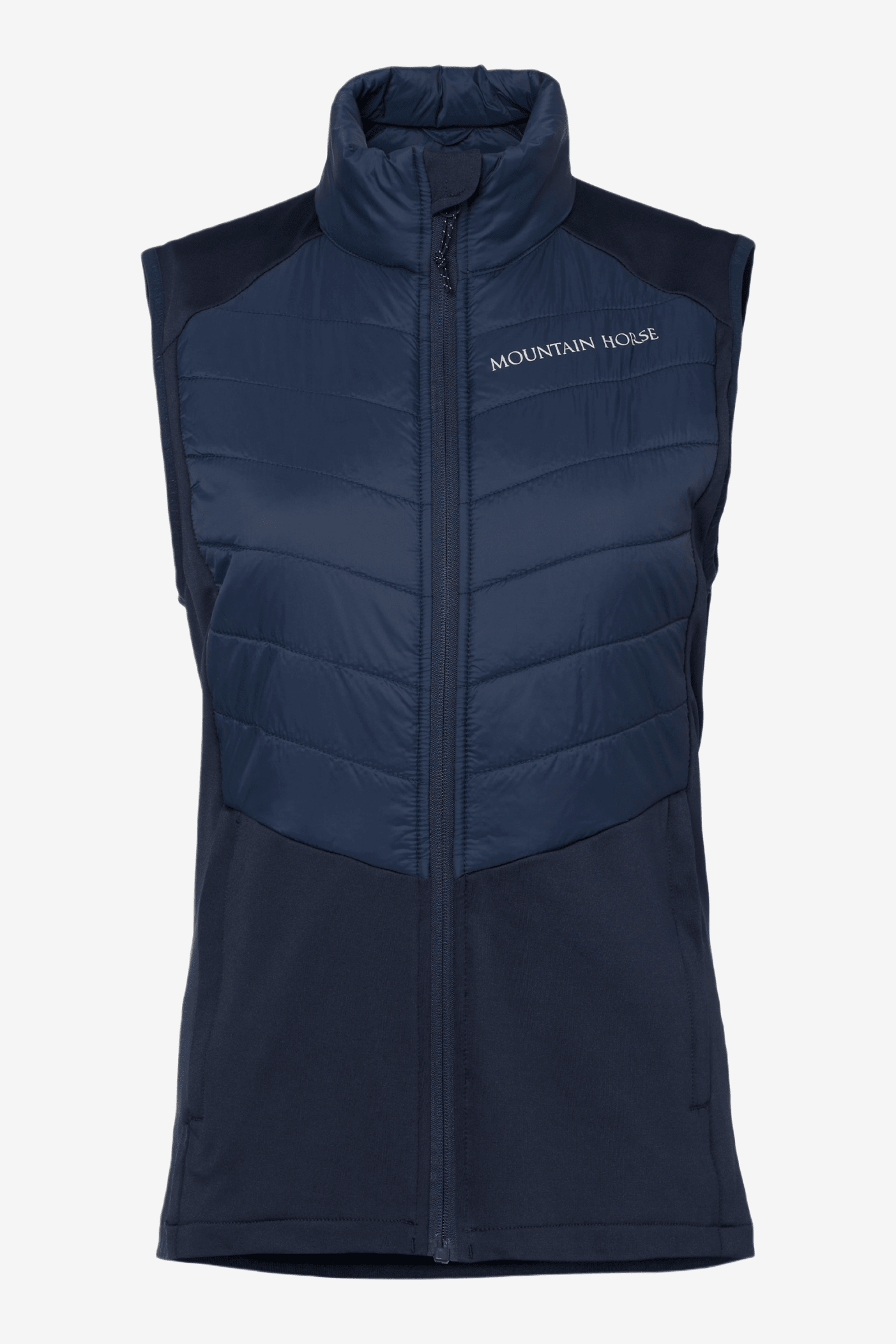 Bodywarmer van Mountain Horse. Licht gewatteerde bodywarmer met flexibele delen van technische fleece. Geïsoleerde, water- en windafstotende gewatteerde delen maken hem perfect voor het voorjaar of het vroege najaar. Flexibele, zachte technische fleece langs de zijkanten zorgt voor extra draagcomfort.