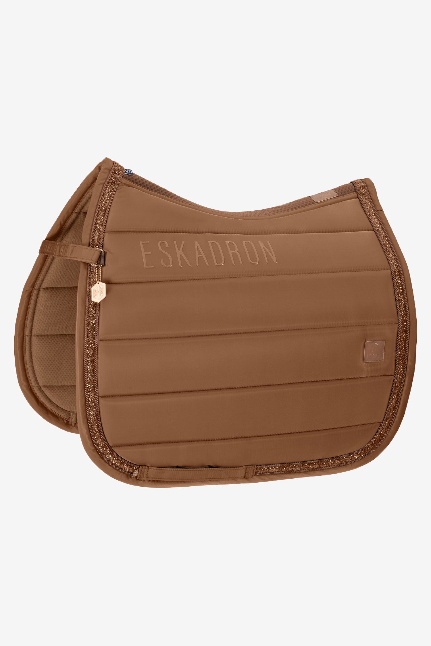 De brede glitterbies zorgt voor een extra opvallende look. Siliconen patches bovenop bij de zadelbladen geven de onderlegger extra grip en zorgen dat deze beter op zijn plaats blijft onder het zadel.