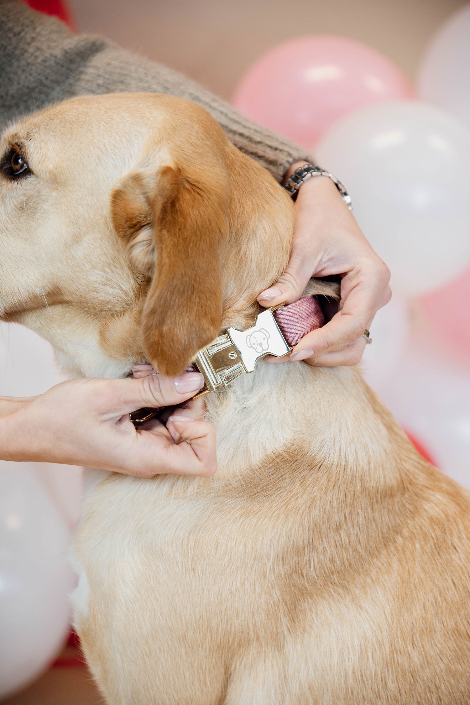 Dit geeft de halsband extra sterkte en duurzaamheid. Verstel eenvoudig de lengte van de halsband en gebruik vervolgens de clips om hem snel en gemakkelijk om te doen en af te nemen. Messing ring om de lijn aan te bevestigen.