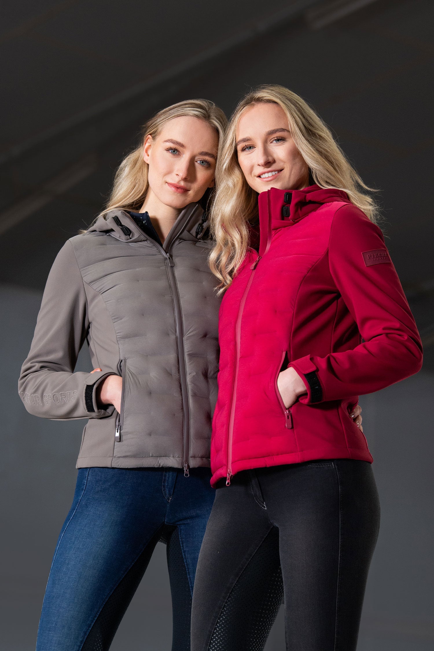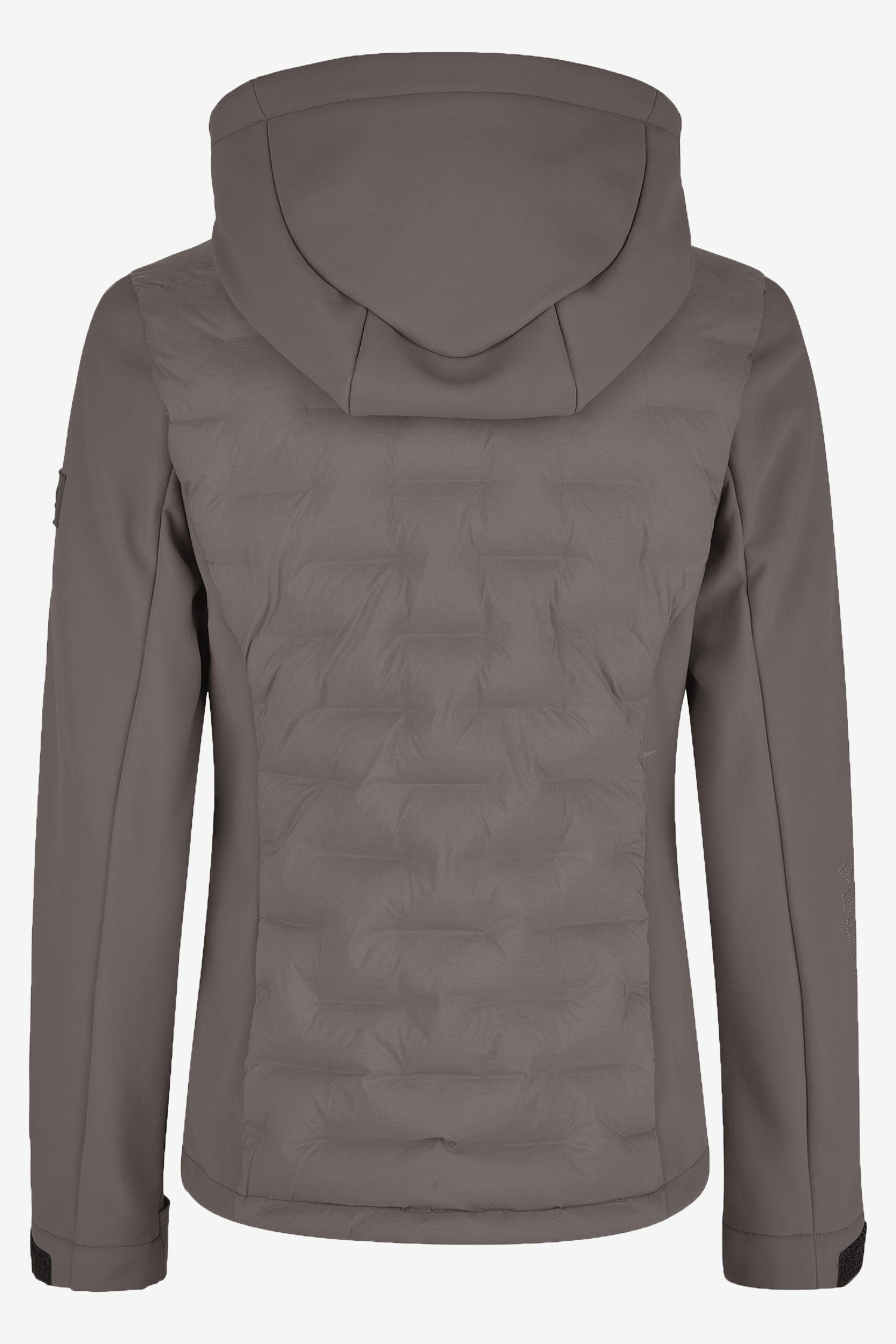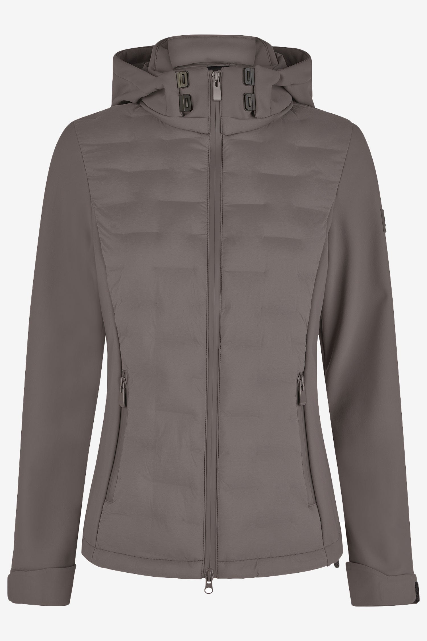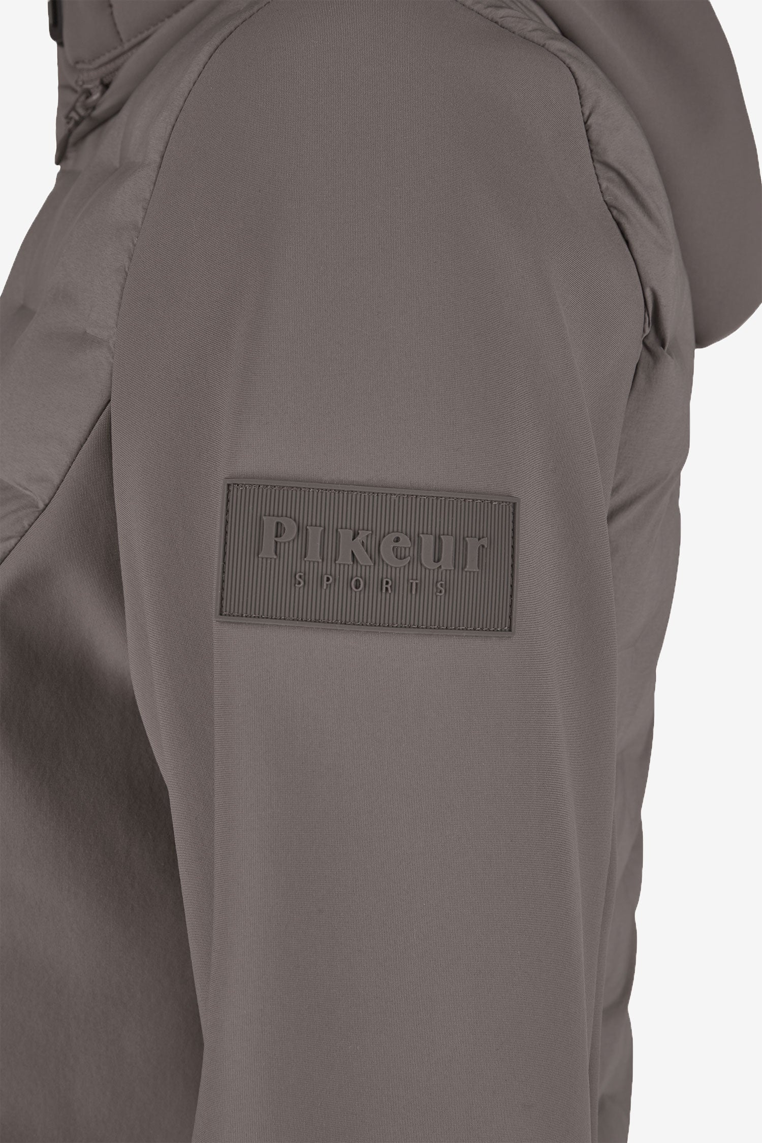 Hybride jas van Pikeur, geschikt voor het herfst- en winterseizoen. De jas is voorzien van een opstaande kraag en twee voorzakken met ritssluiting, evenals softshellmateriaal aan de zijkanten en mouwen voor optimale bewegingsvrijheid en ademend vermogen.