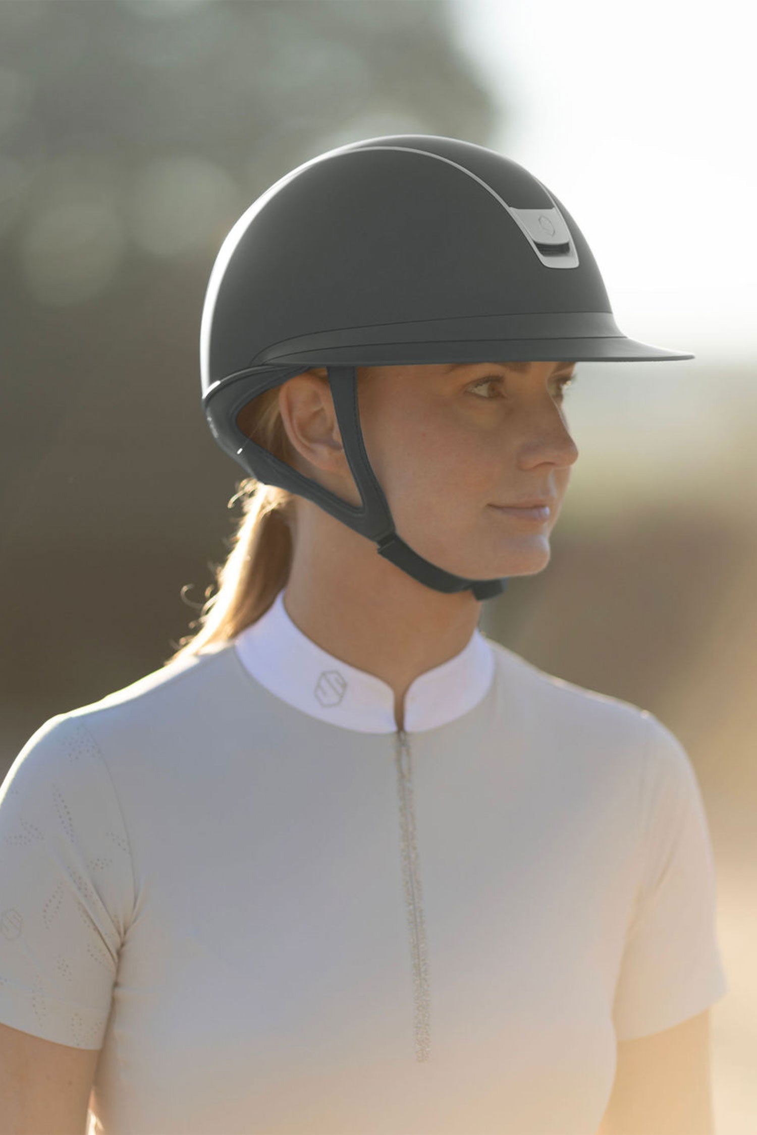 De helm is gemaakt van geavanceerde materialen zodat ruiters volop van hun sport kunnen genieten zonder beperkingen: