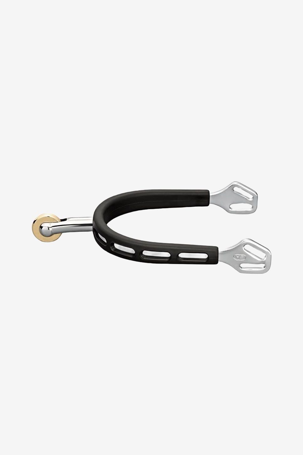 Mjuk gummi som gör att sporren hålls på plats och skyddar mot både onödigt tryck och slitage på stövlarna.