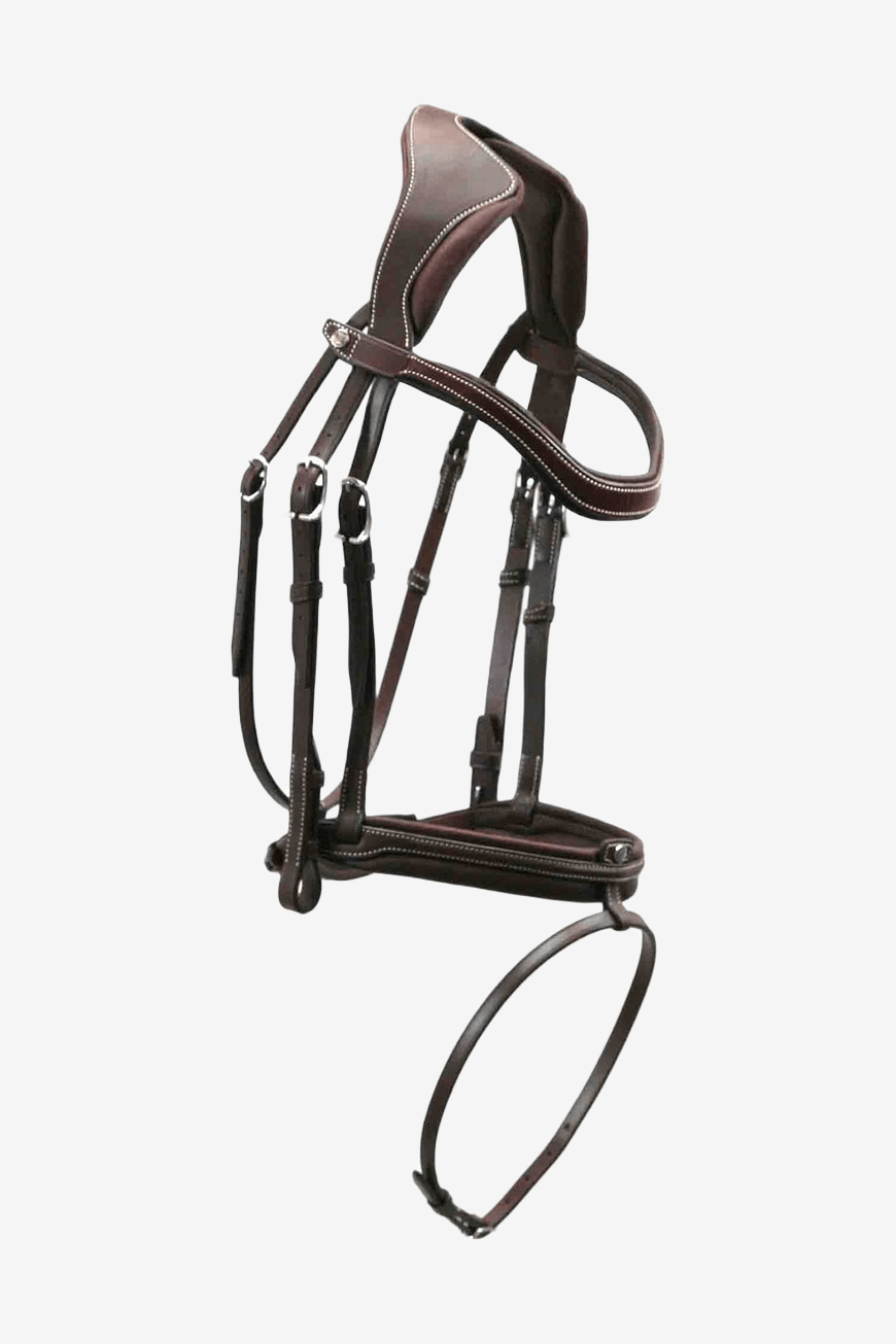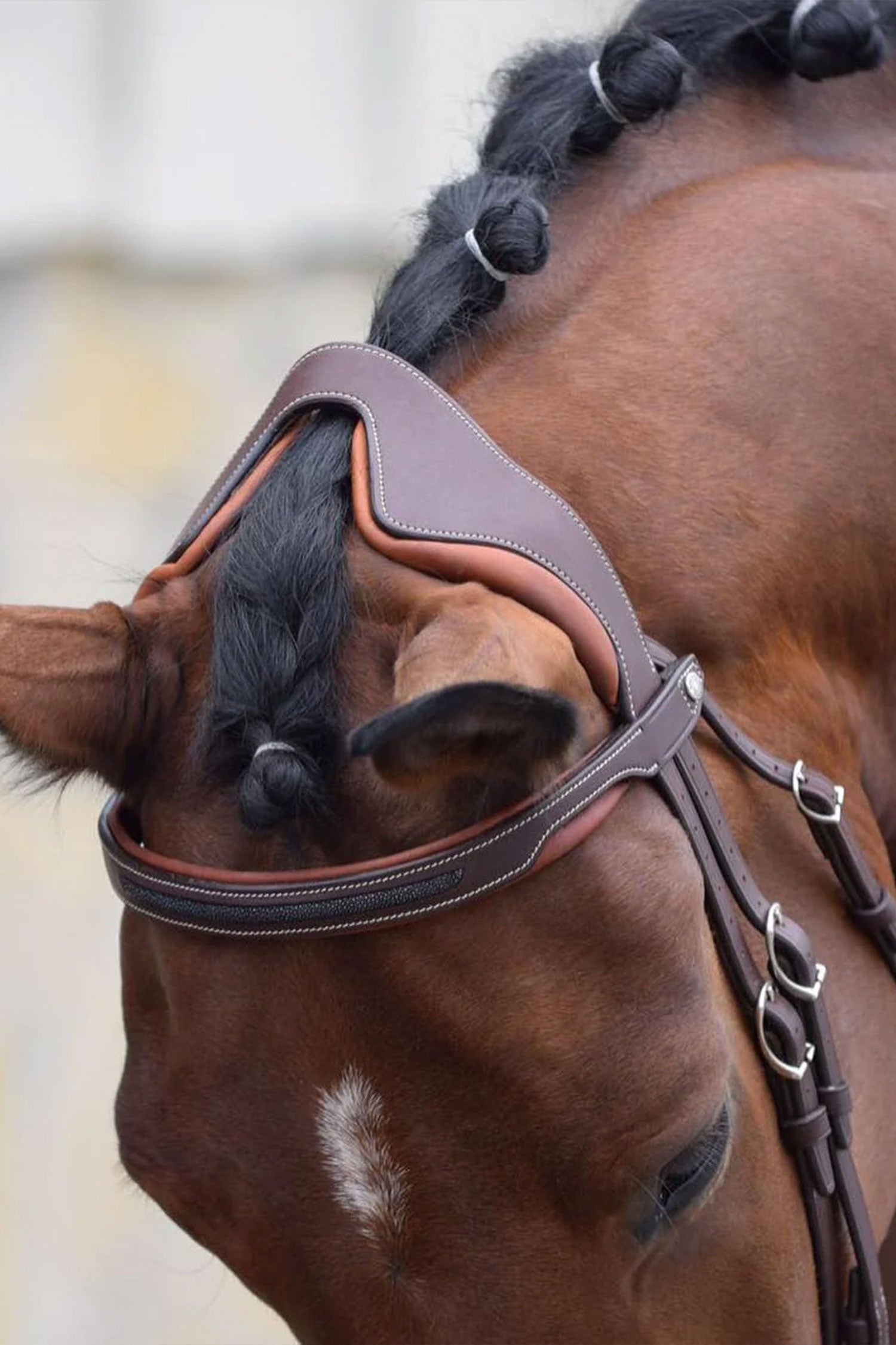 Ogłowie Antares z naczółkiem "Precision" i kombinowaną nachrapnikem wykonane z francuskiej skóry.