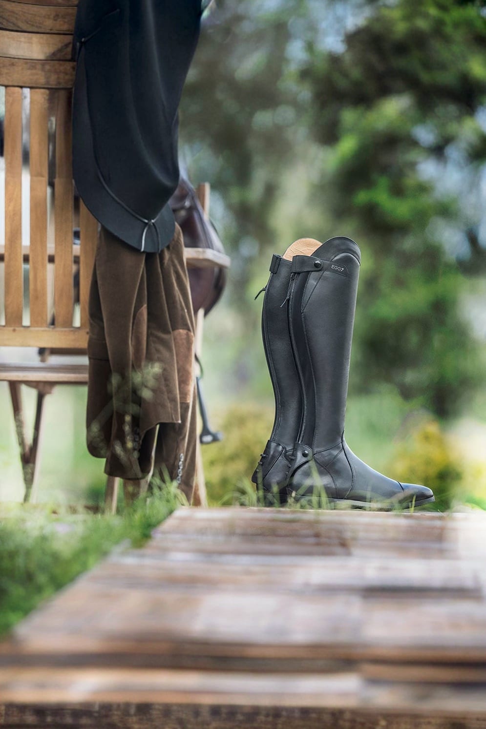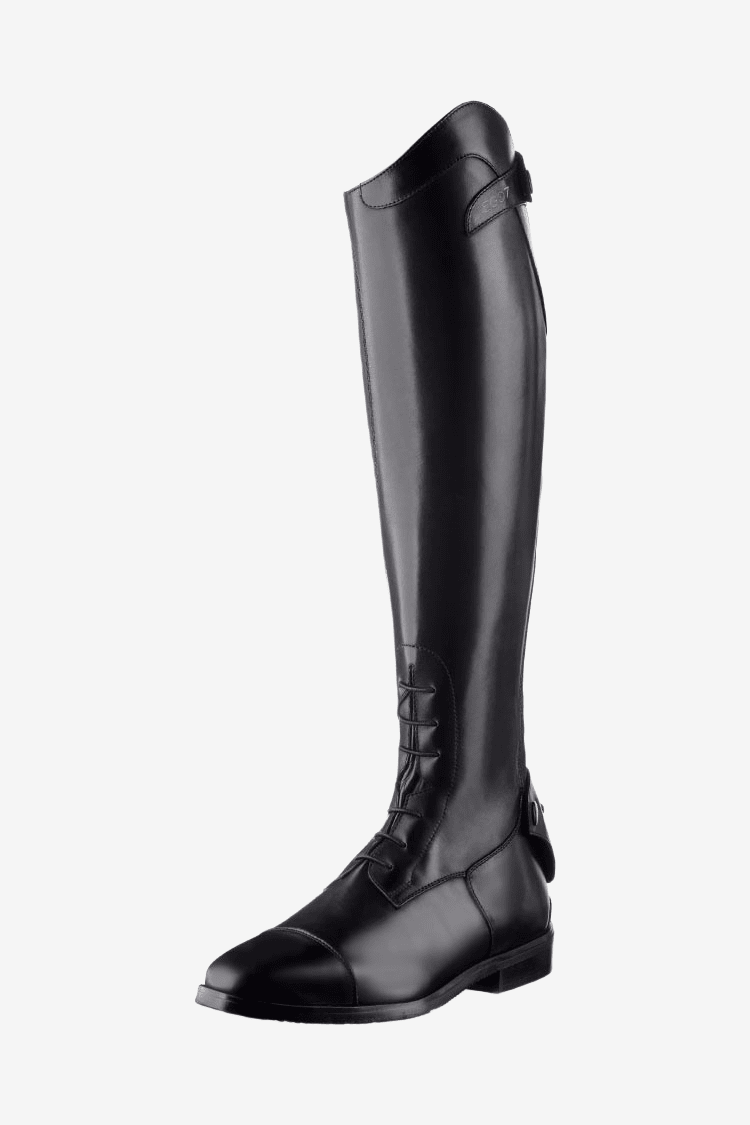 Buty wykonane są z wysokiej jakości skóry licowej oraz wyjątkowo miękkiej skóry na podbiciu dla zwiększenia komfortu. Pełny zamek błyskawiczny z bardzo wytrzymałego materiału z tyłu z elastyczną wstawką zapewnia stabilność i wysoki komfort, swobodę ruchów oraz dopasowanie jak w butach szytych na miarę. Po wewnętrznej stronie łydki skórę licową zastąpiono innowacyjnym i bardzo wytrzymałym materiałem E-tex. Chroni on lepiej łydkę oraz zapewnia doskonałą przyczepność i kontakt z koniem oraz siodłem. Z tyłu znajduje się plastikowy uchwyt na ostrogę z trzema różnymi pozycjami, który utrzymuje ostrogę stabilnie na miejscu.
