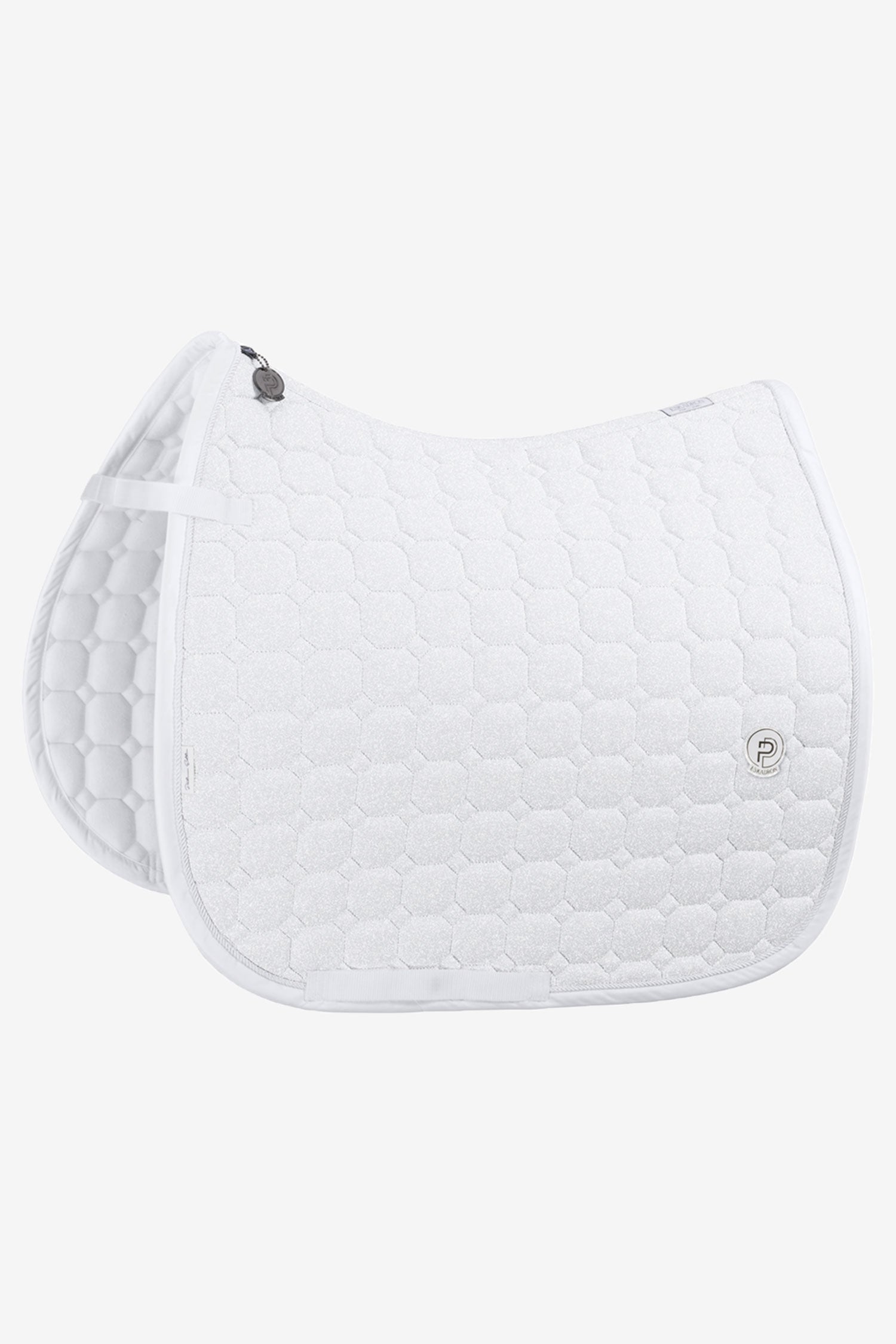 Wykończony elegancką lamówką i zewnętrzną tkaniną z połyskującego materiału, która nadaje ekskluzywny wygląd. Cały czaprak wykonany jest z oddychających materiałów, które utrzymują konia w suchości podczas jazdy. Logo Eskadron Platinum zostało stylowo umieszczone jako dodatkowy luksusowy detal na czapraku.