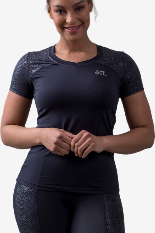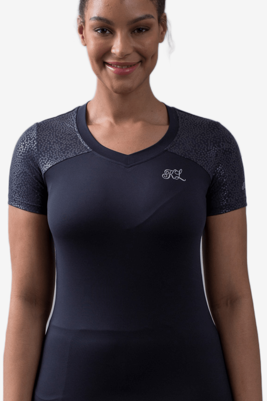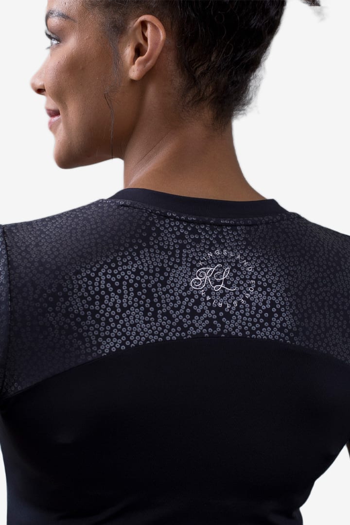 Szczegóły z logo Kingsland na klatce piersiowej i plecach oraz nadruk z cekinami na rękawach, z przodu i z tyłu na ramionach.