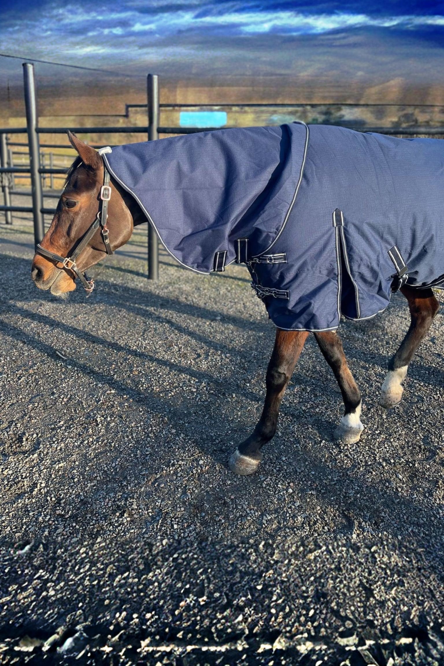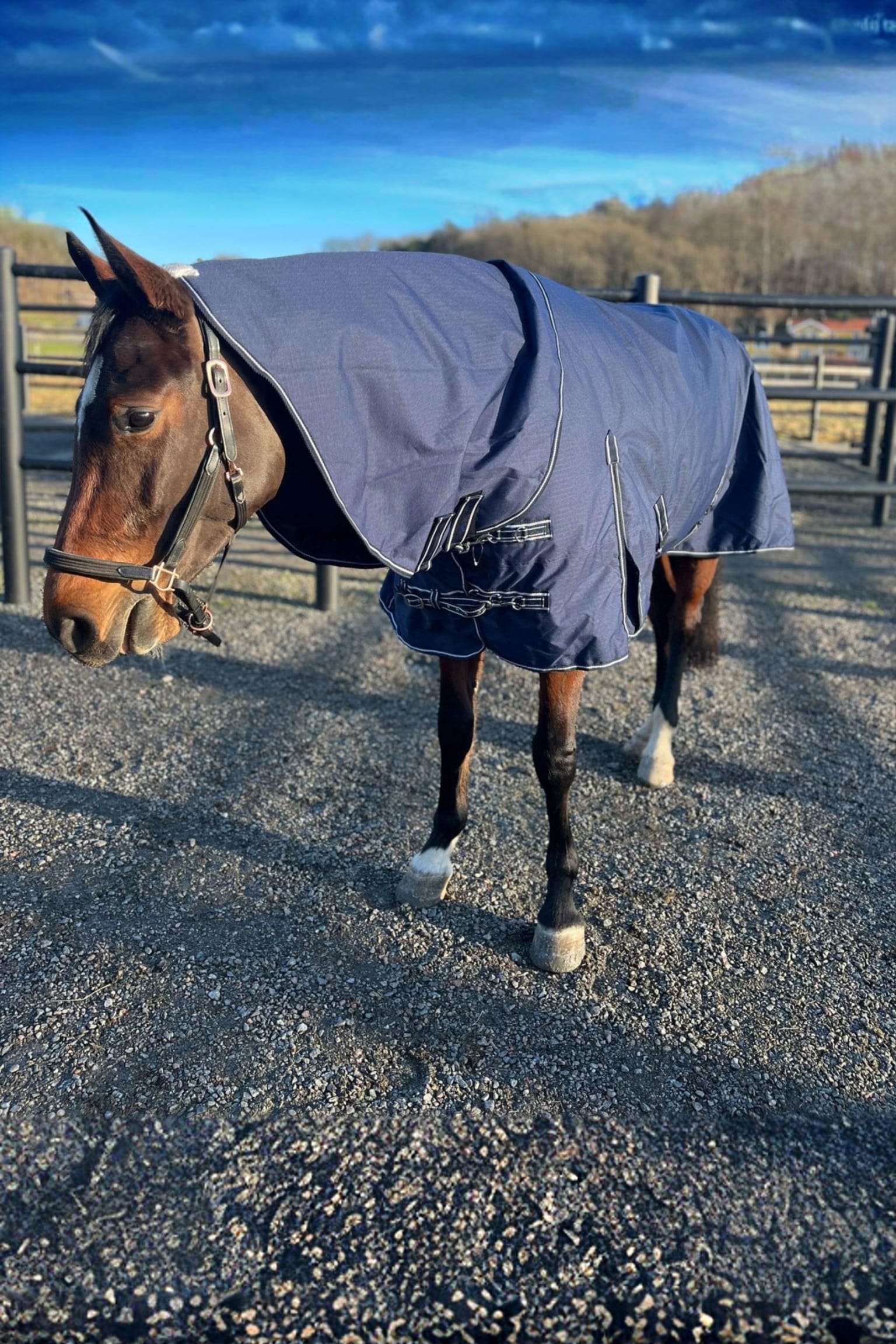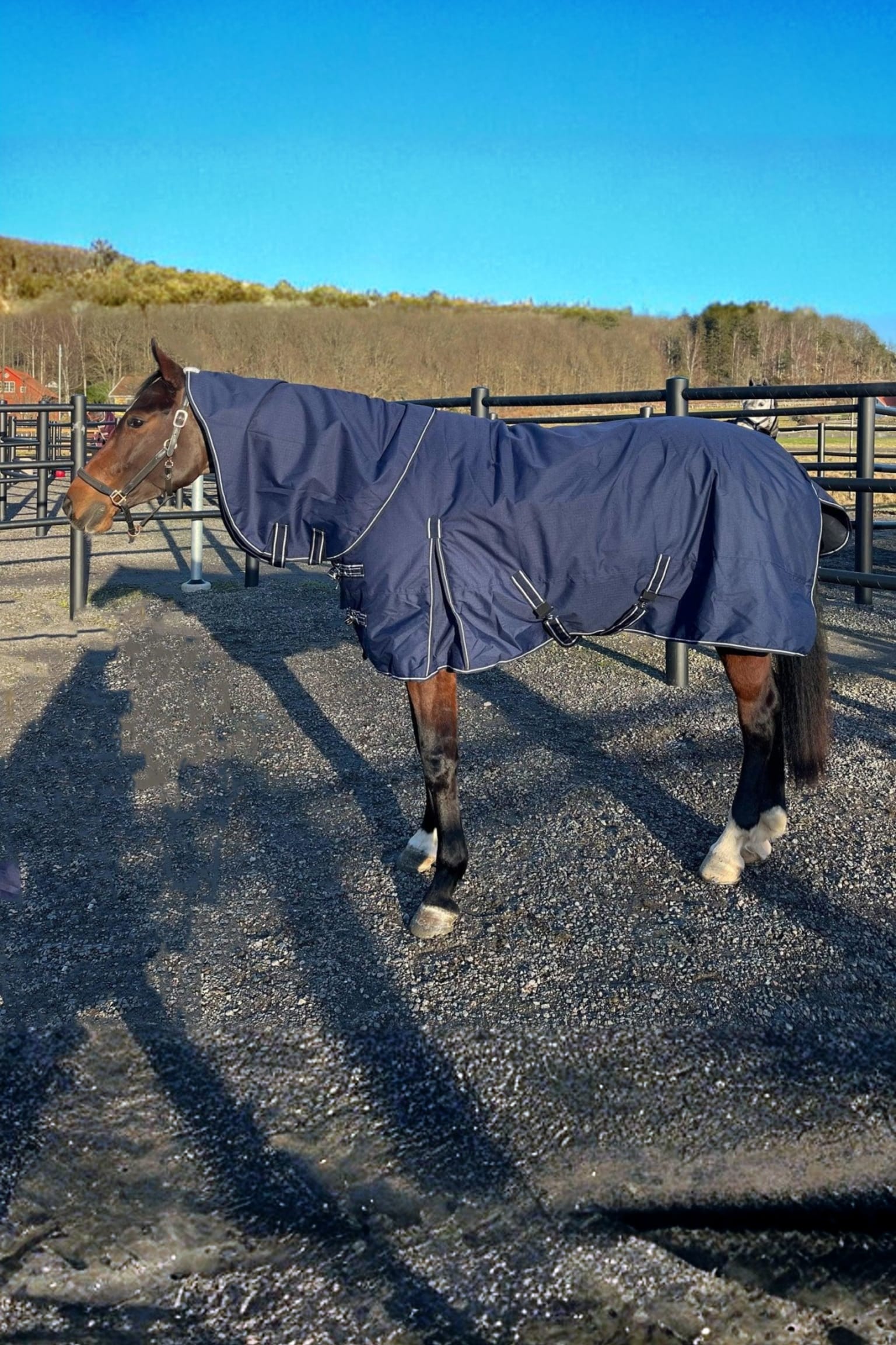 Derka zewnętrzna LW to bardzo popularna derka dla konia (wypełnienie 100g) z wytrzymałym materiałem zewnętrznym 600D. Derka posiada wyjątkowo mocny, oddychający i wodoodporny materiał zewnętrzny z poliestru. Kliny na łopatkach przy nogach zapewniają maksymalną swobodę ruchu. Wewnętrzna podszewka z poliestru minimalizuje ryzyko obtarć. Zapięcie z przodu na regulowane sprzączki oraz 2 pasy krzyżowe pod brzuchem, metalowe sprzączki po wewnętrznej stronie kaptura do przypięcia kaptura. Ta derka posiada odpinany kaptur (100g), który jest w zestawie.